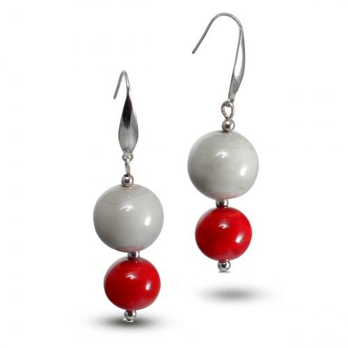 Серьги изготовлены из муранского стекла и гипоаллергенной ювелирной стали, что очень важно для людей с чувствительной кожей. Металл не темнеет и не подвергается воздействиям окружающей среды, надолго обеспечивая красивый внешний вид изделия. Длина серег - 4 см. Диаметр стеклянного шарика - 1,5 см.  Вес обеих серег - 11 гр.