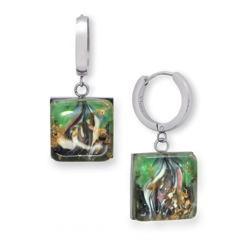 Серьги изготовлены из муранского стекла и гипоаллергенной ювелирной стали, что очень важно для людей с чувствительной кожей. Металл не темнеет и не подвергается воздействиям окружающей среды, надолго обеспечивая красивый внешний вид изделия. Длина серег - 4 см. Диаметр стеклянного шарика - 1,5 см. Вес - 14 гр.