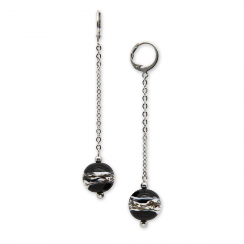 Серьги изготовлены из муранского стекла и гипоаллергенной ювелирной стали, что очень важно для людей с чувствительной кожей. Металл не темнеет и не подвергается воздействиям окружающей среды, надолго обеспечивая красивый внешний вид изделия. Длина серег -5,5 см. Диаметр стеклянного элемента - 2 см. Шар - 1 см. Вес - 14 гр.