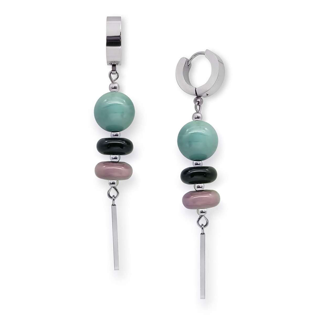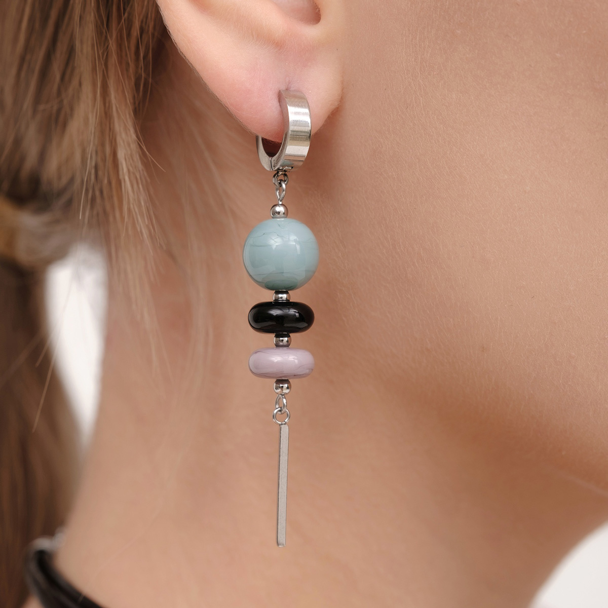 Серьги изготовлены из муранского стекла и гипоаллергенной ювелирной стали, что очень важно для людей с чувствительной кожей. Металл не темнеет и не подвергается воздействиям окружающей среды, надолго обеспечивая красивый внешний вид изделия. Длина серег - 7,5 см. Диаметр стеклянных шариков - 1,2 см. Размер бусин - 1х0,5 см. Вес - 15 гр.