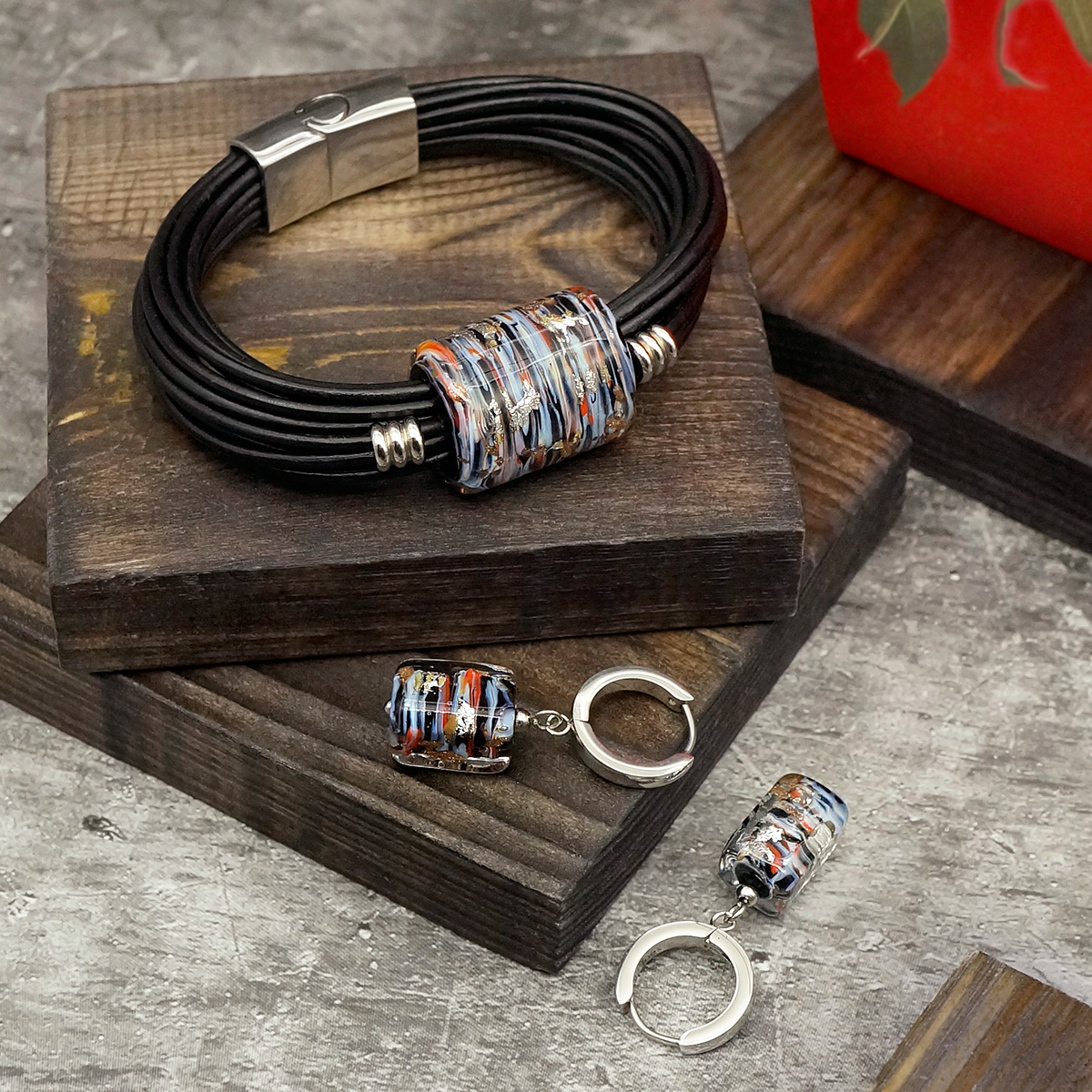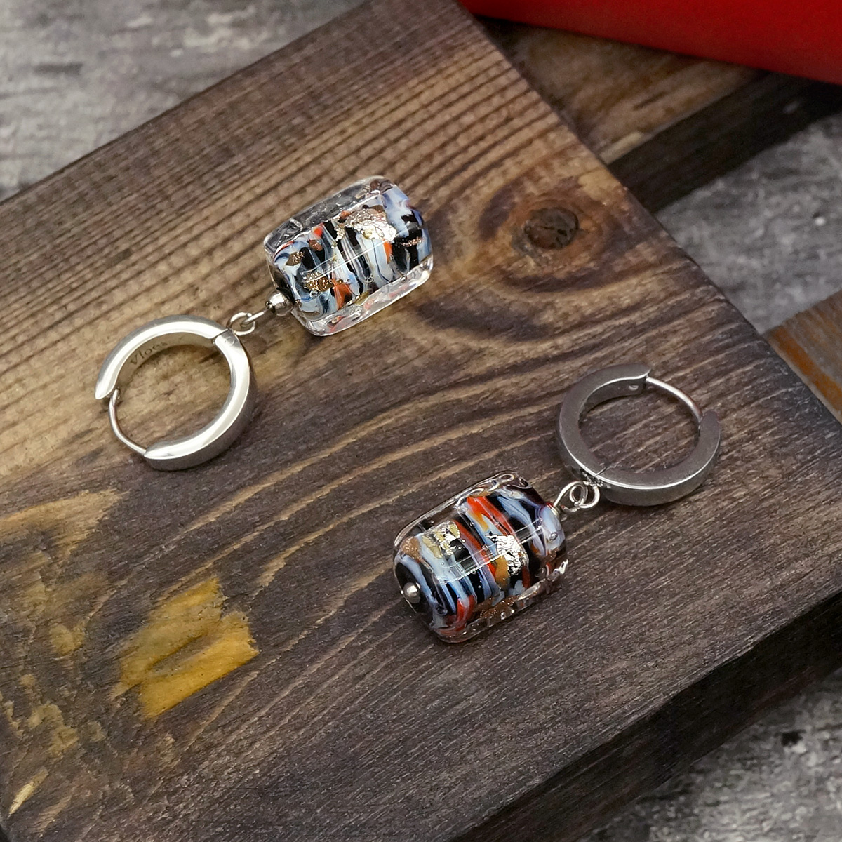 Серьги изготовлены из муранского стекла и гипоаллергенной ювелирной стали, что очень важно для людей с чувствительной кожей. Металл не темнеет и не подвергается воздействиям окружающей среды, надолго обеспечивая красивый внешний вид изделия. Длина серег - 4 см. Размер стеклянной бусины - 1х1,5 см. Вес - 11 гр.