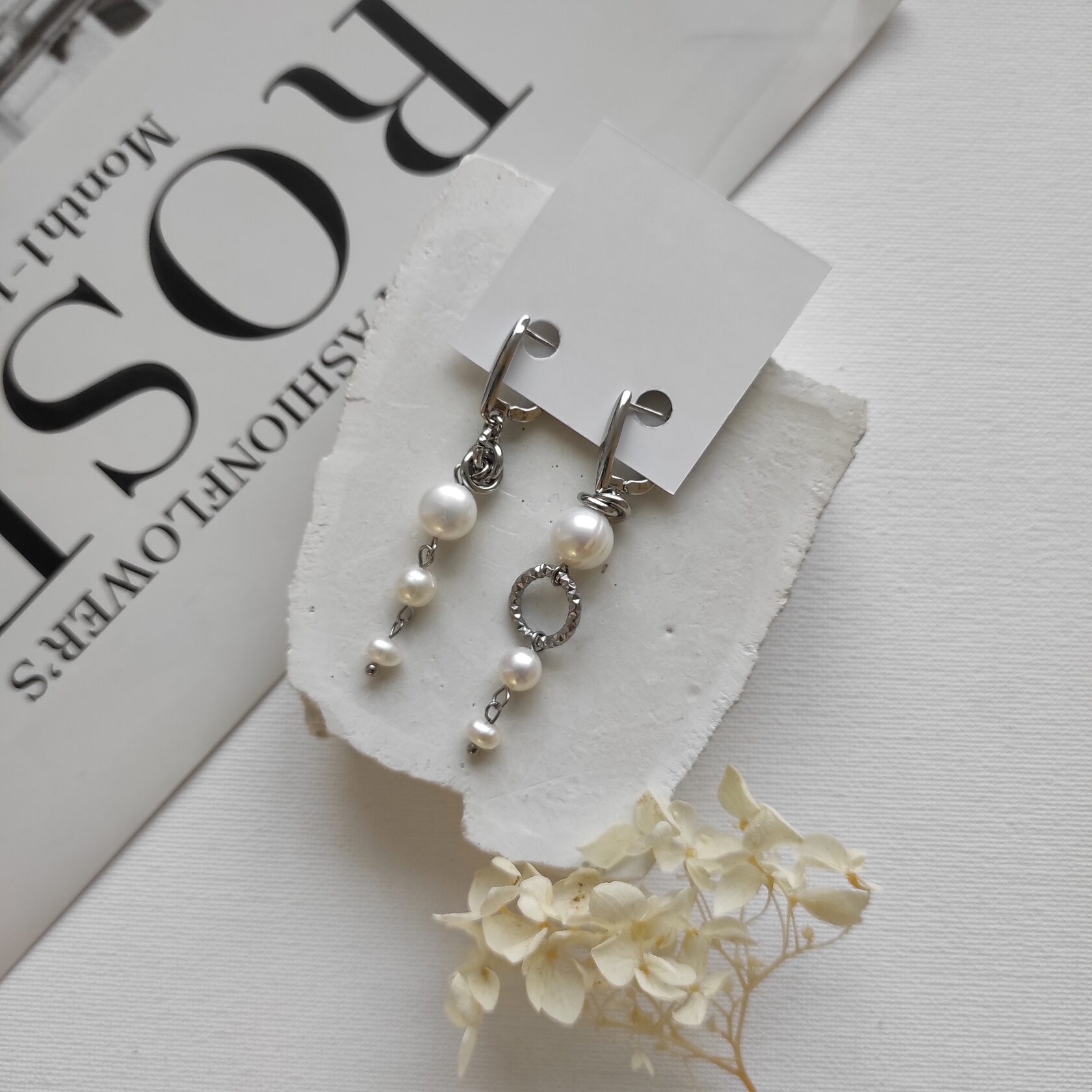 Серьги, асимметричная пара из округлого жемчуга
