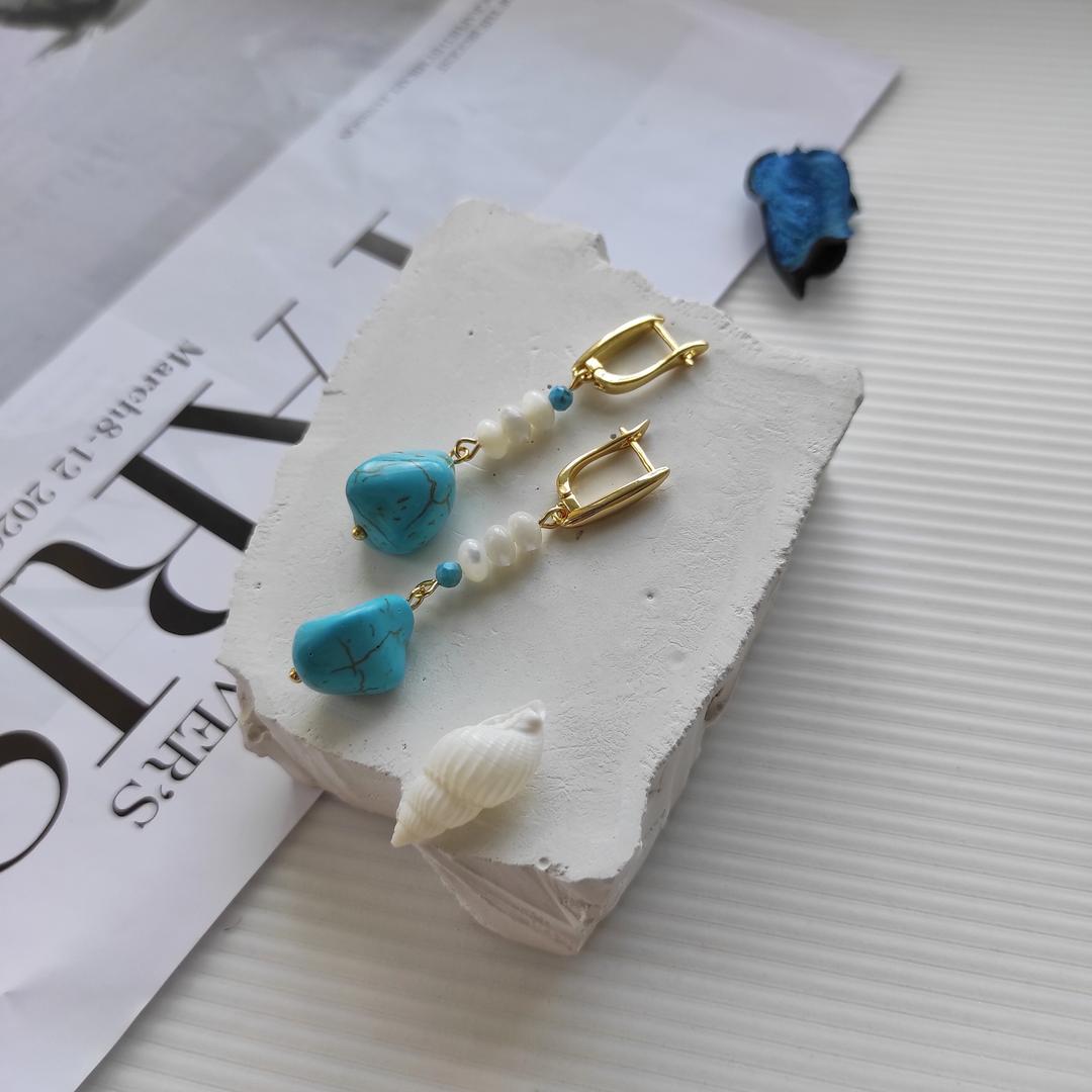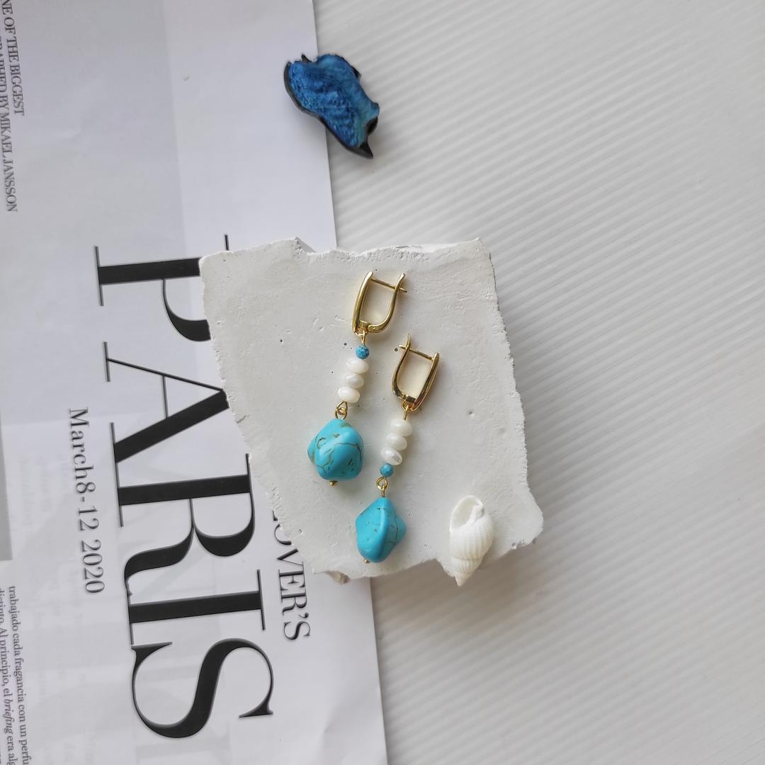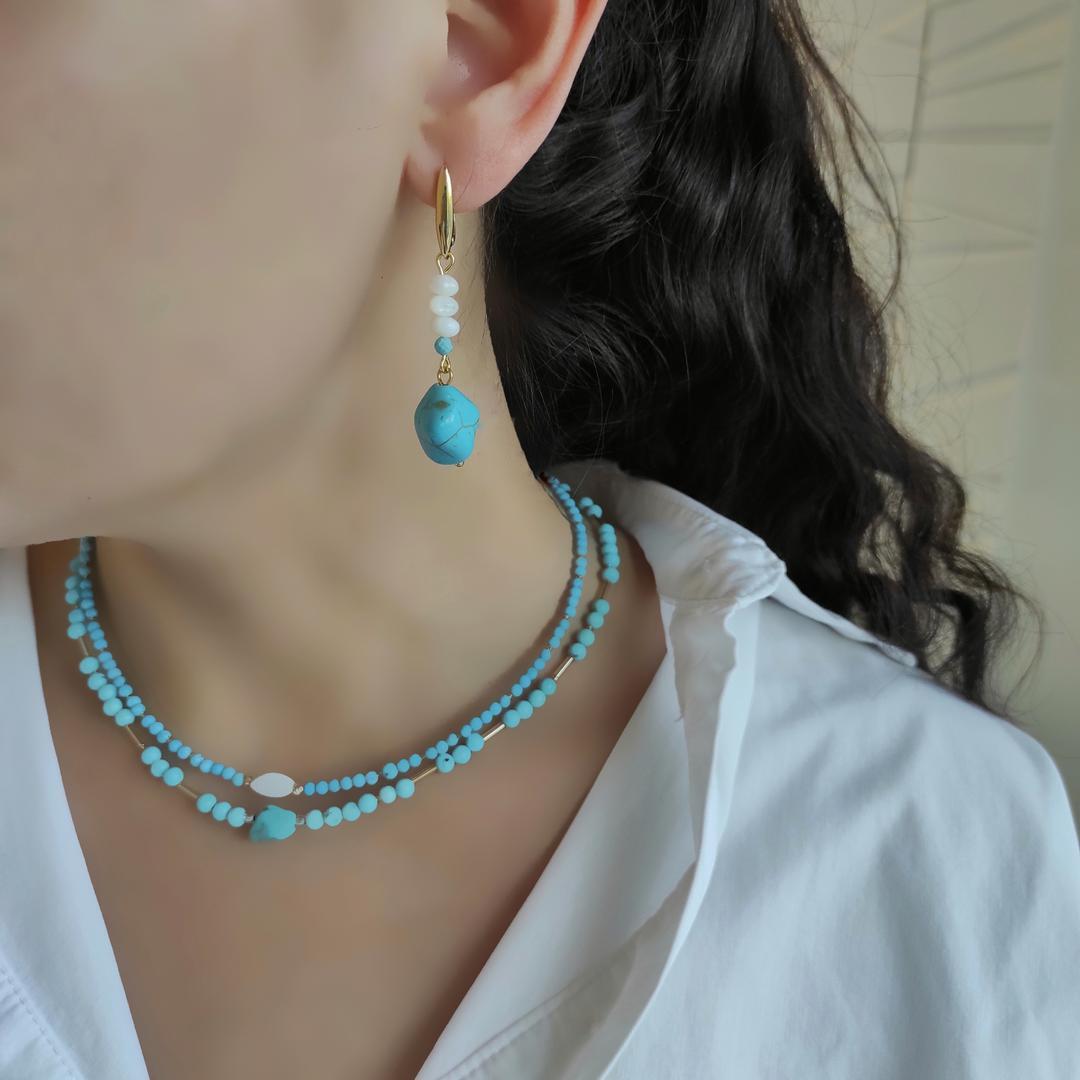 Натуральные камни: турквинит, голубой камень, неправильной формы + белый перламутр.