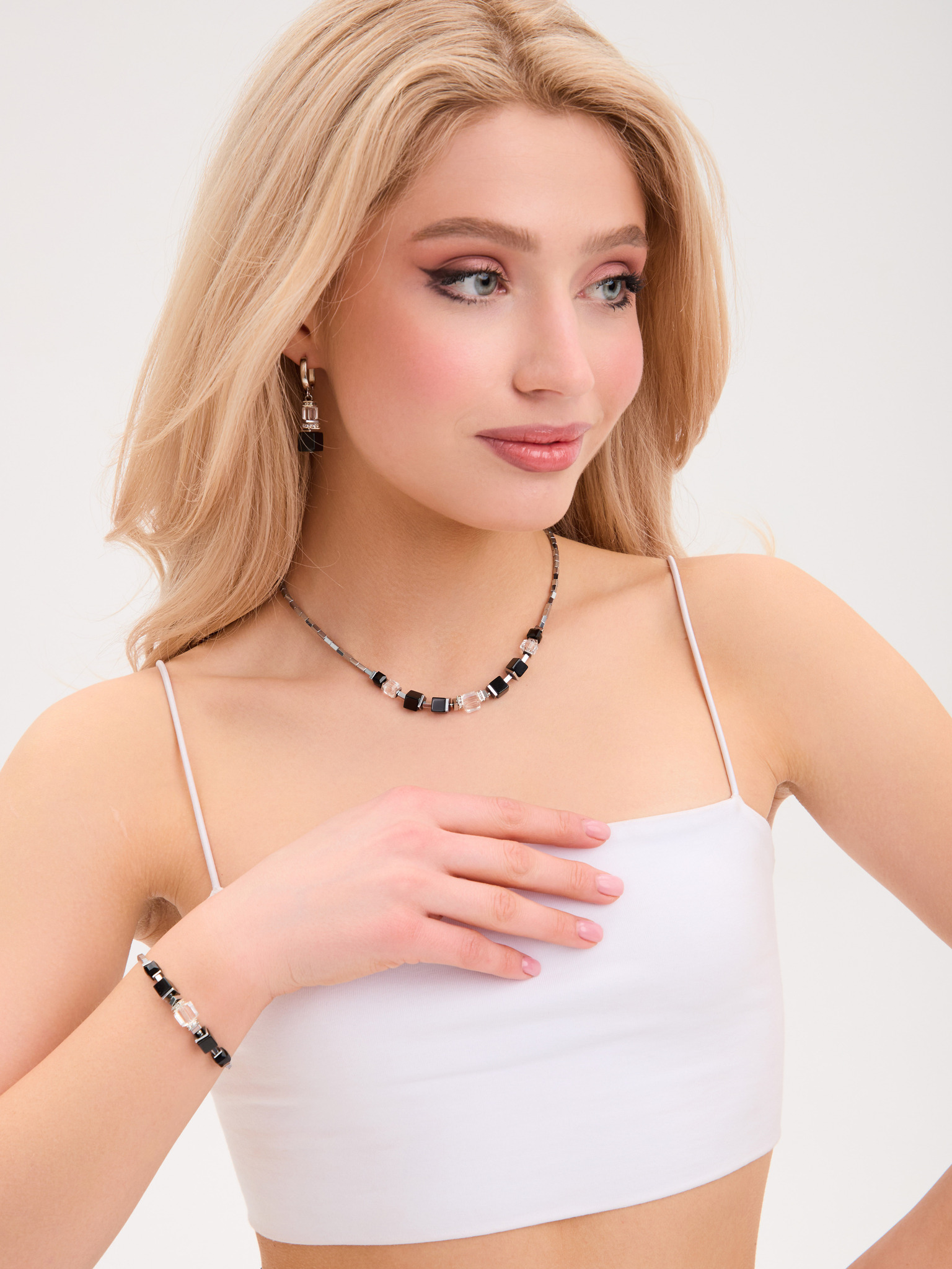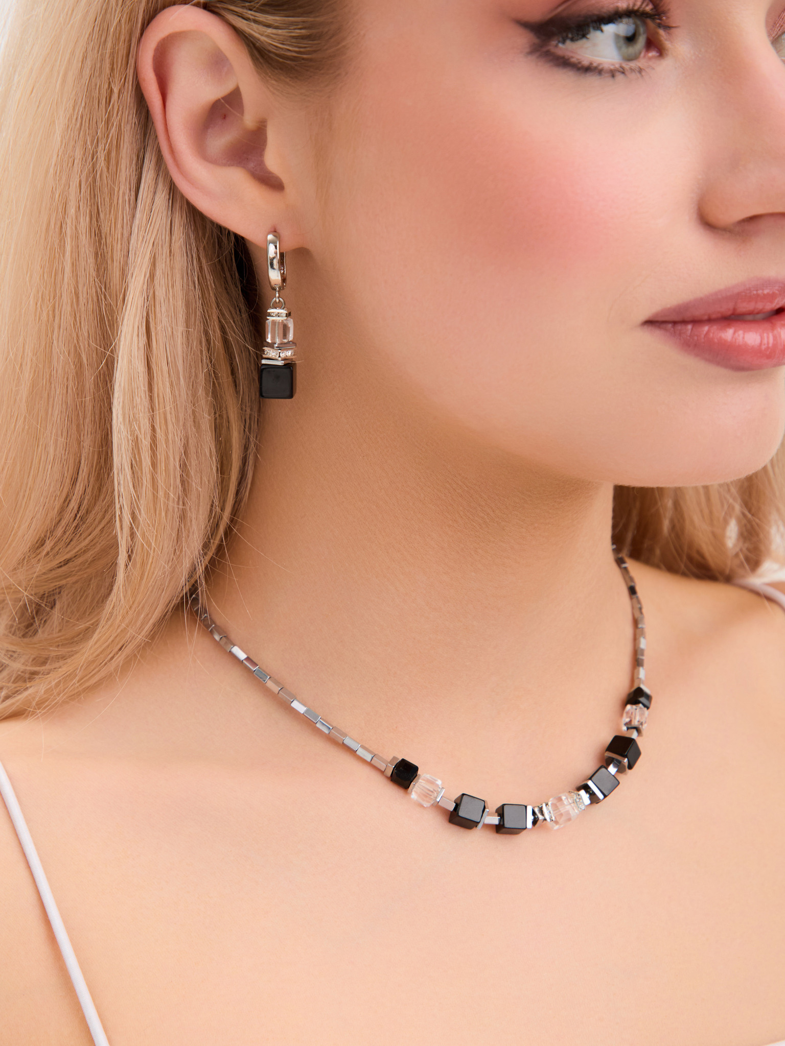Оникс, хрусталь, кристаллы Preciosa, ювелирный сплав. Гальваническое покрытие: родий.