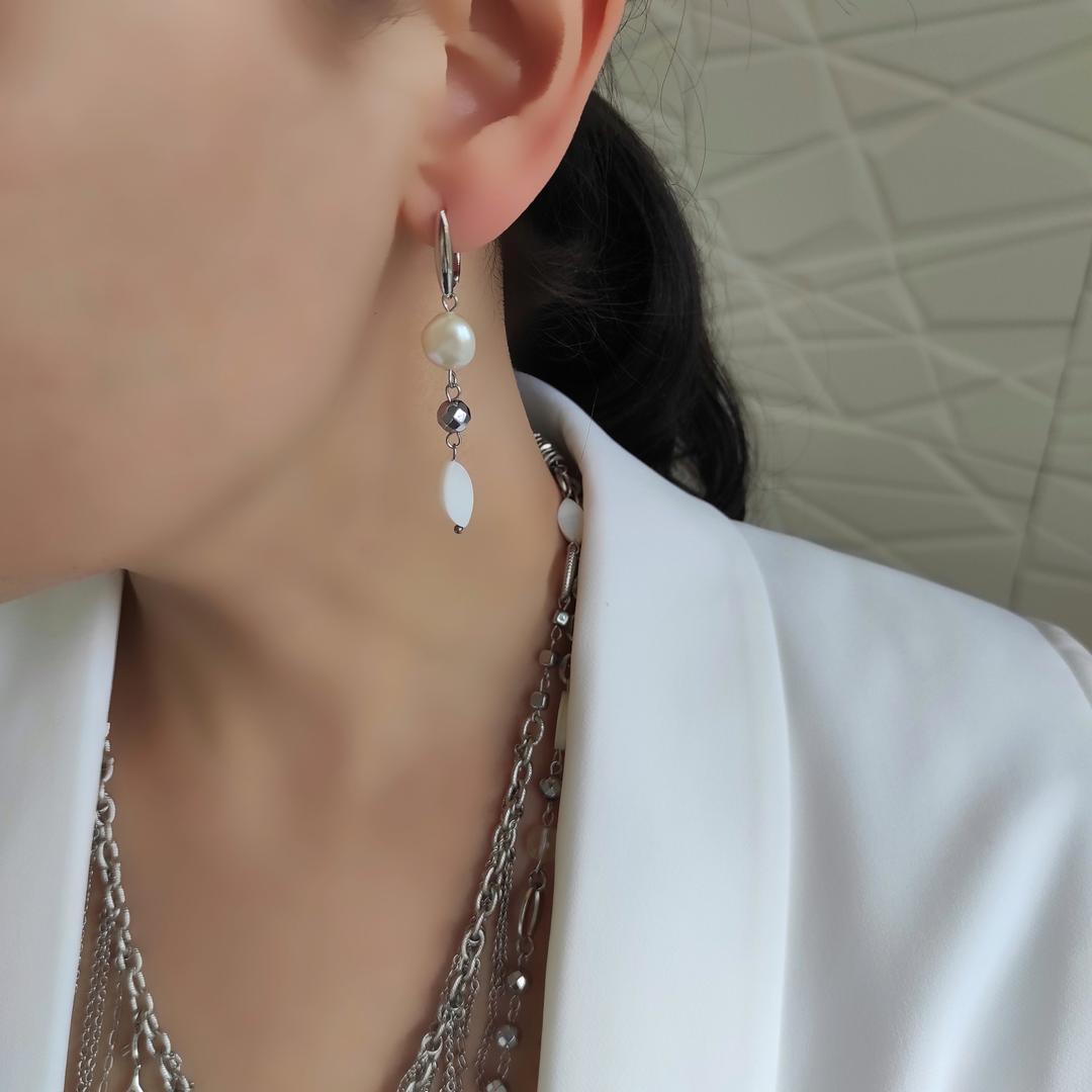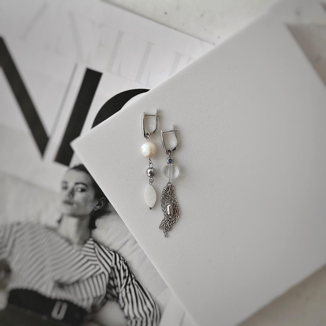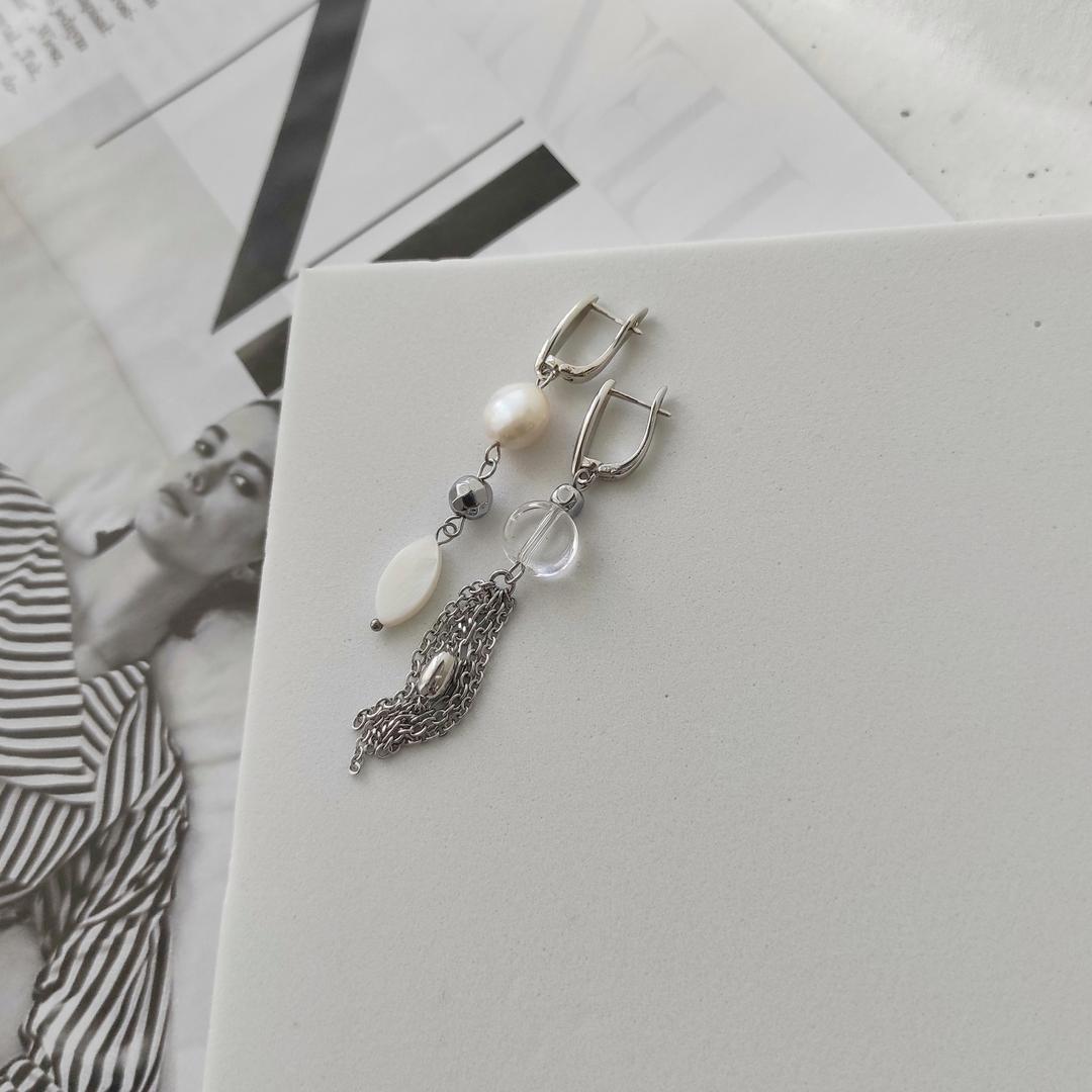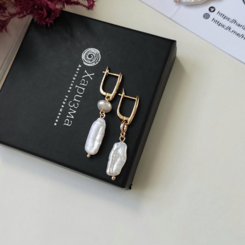 Серьги с барочным жемчугом и горным хрусталем