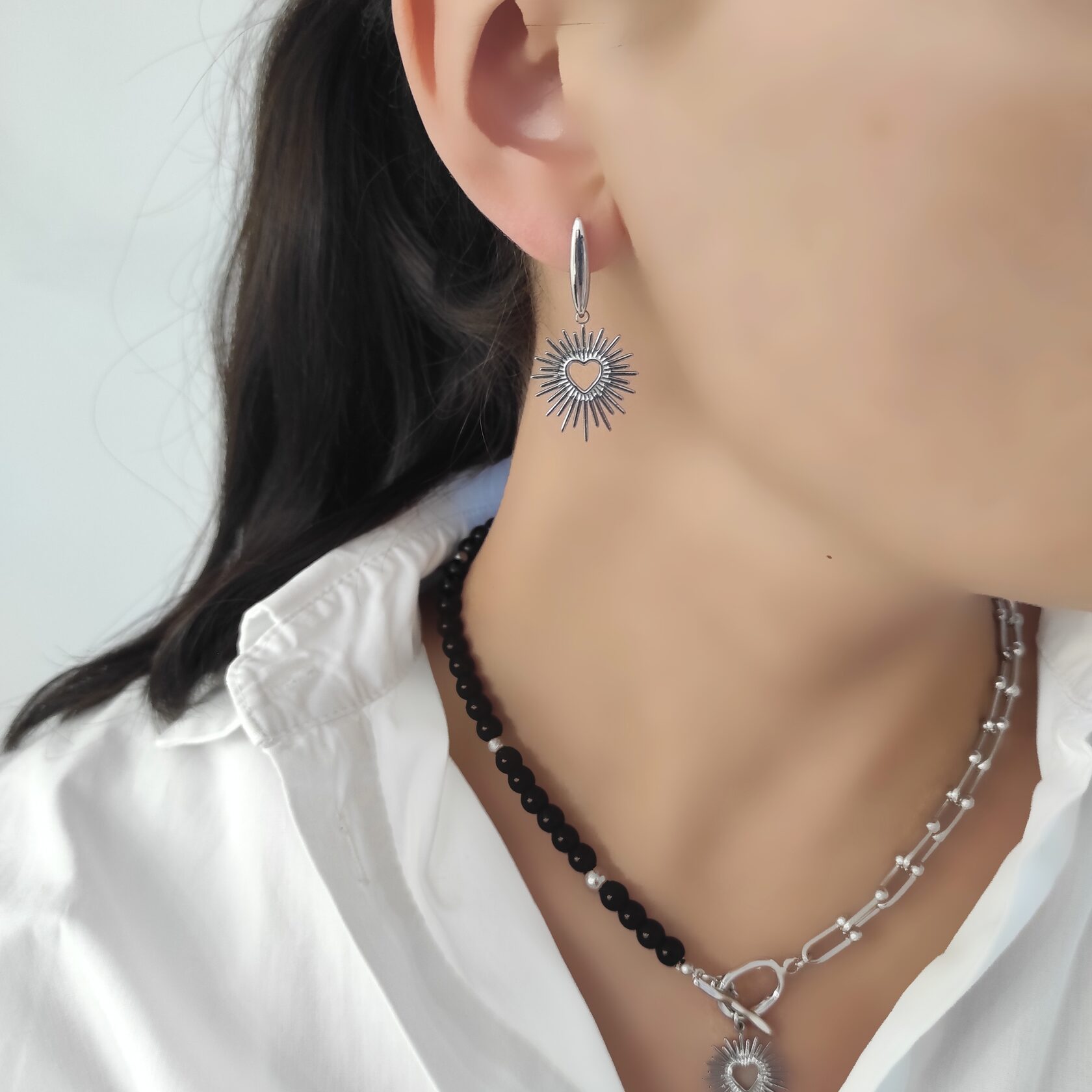 Вторая серьга с подвеской солнце, материал - сталь