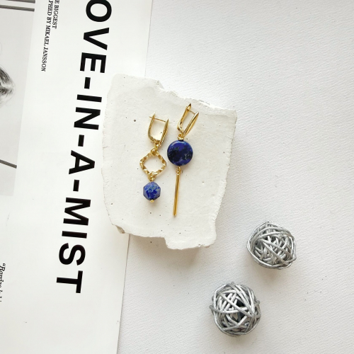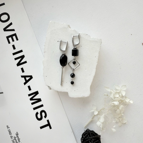 Асимметричные серьги с натуральным черным агатом.