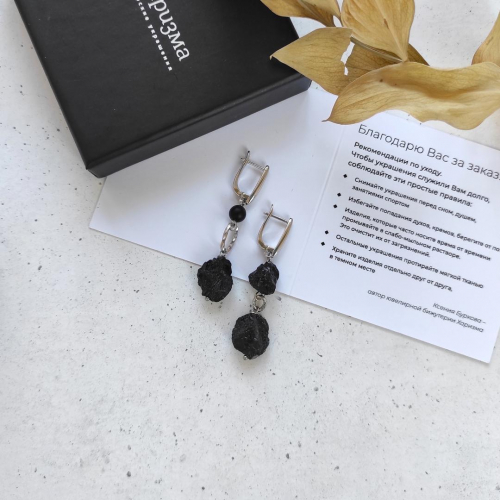 Серьги с черным турмалином (шерл), камни неправильной формы