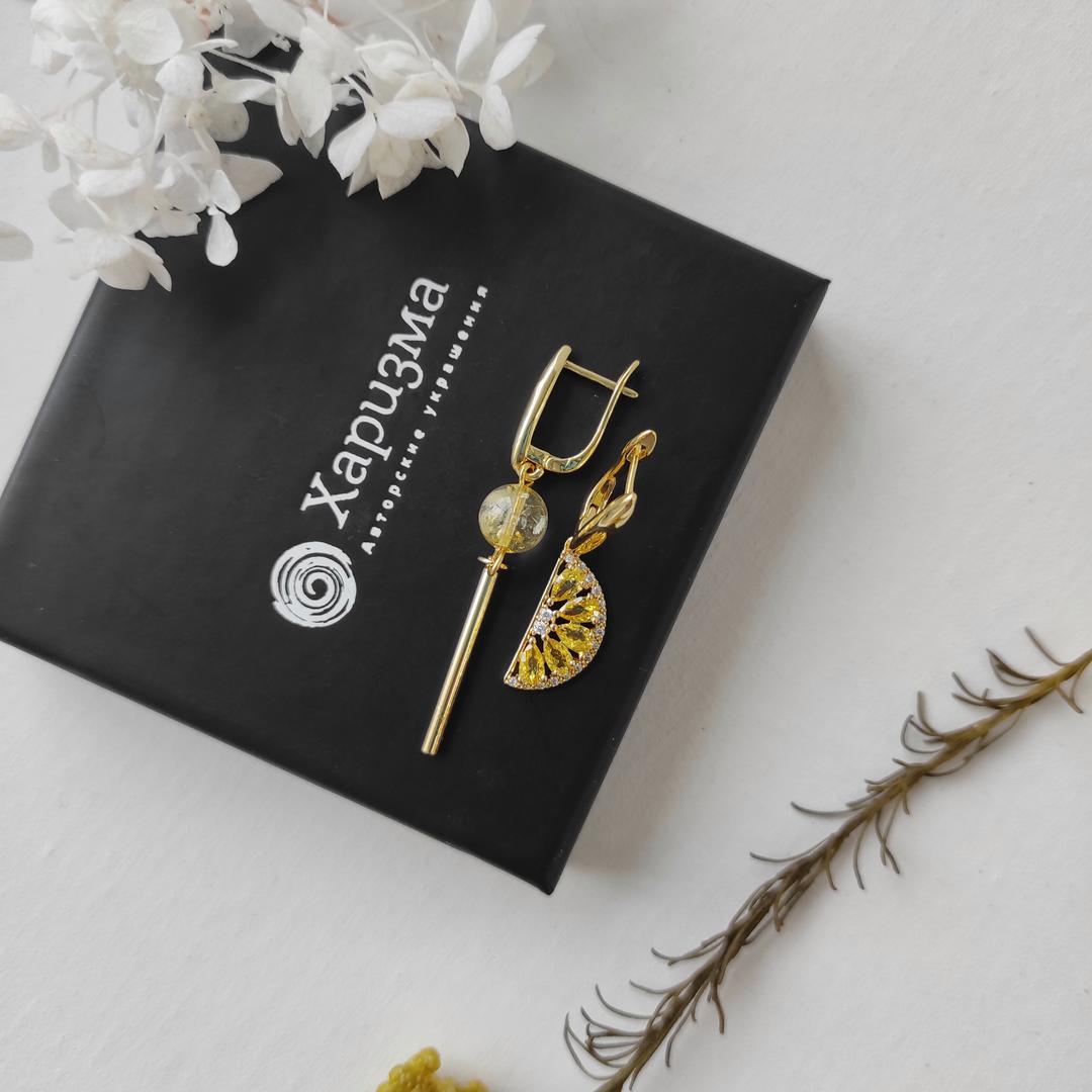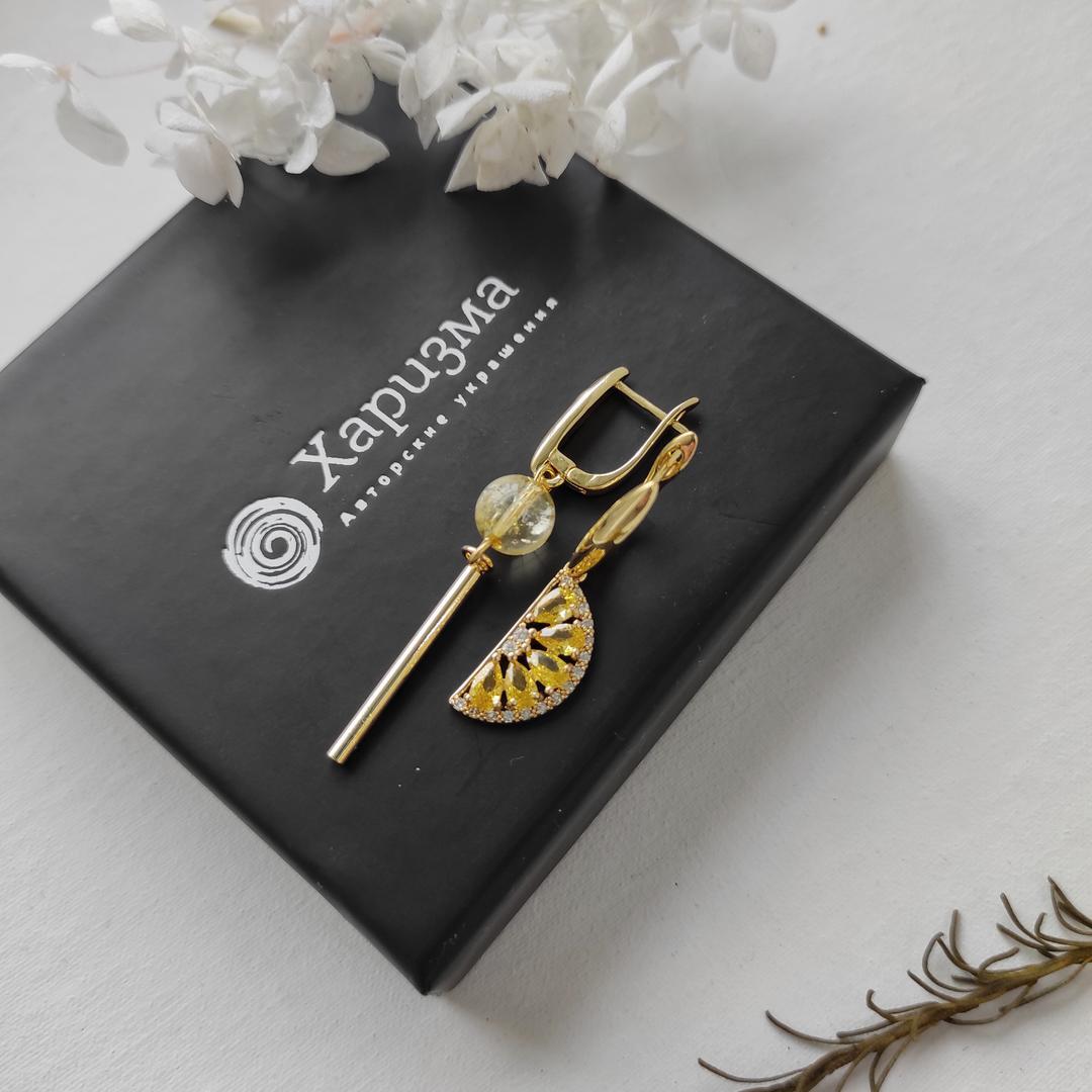 Серьги с цитрином и долькой лимона
