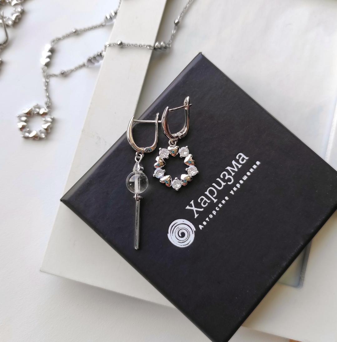Ошибка при загрузке данных! (Асимметричная пара. Удобная застежка английский замок, покрыта родием, гипоаллергенна.