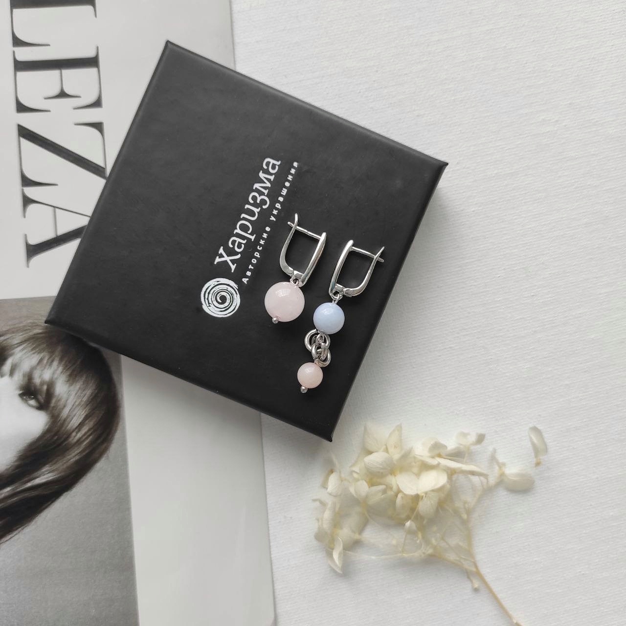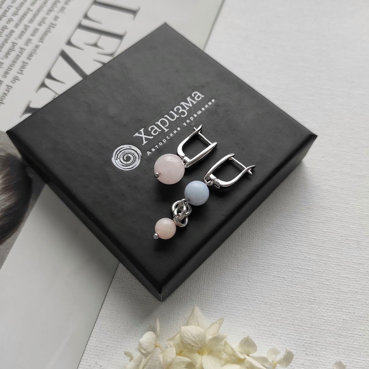 Серьги с кварцем пастельных оттенков