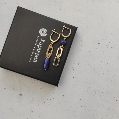 Серьги с лазуритом в позолоченной фурнитуре