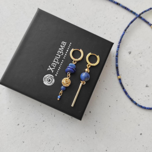 Асимметричная пара. Натуральные камни. Удобная застежка английский замок, позолота 24к. Гипоаллергенна.