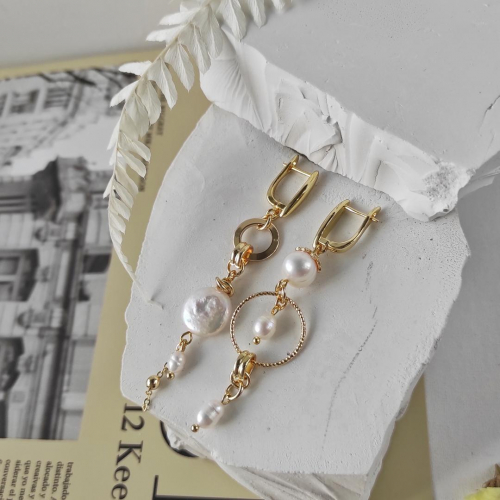 Серьги с жемчугом и шариками в позолоченной фурнитуре