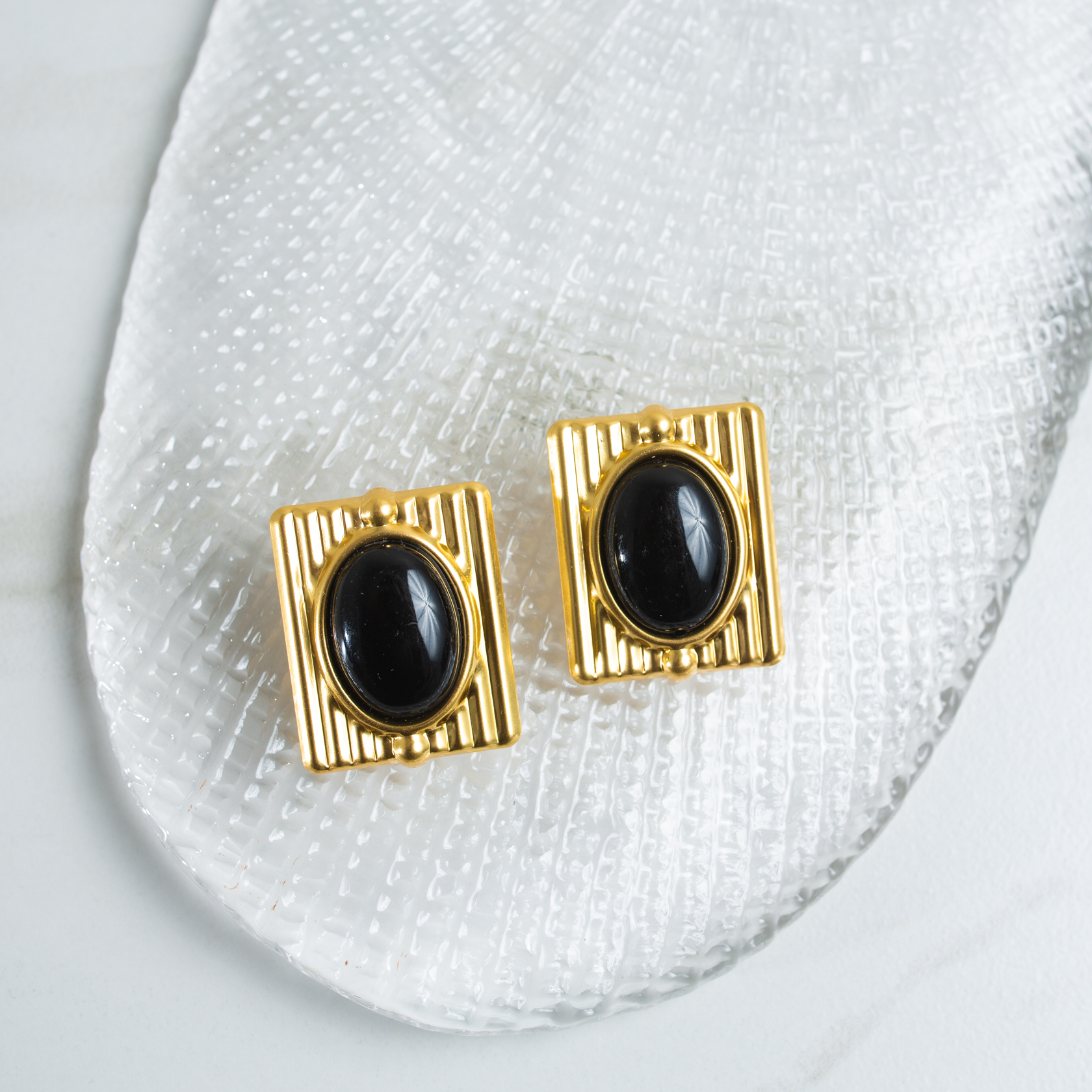 Серьги Serravalle G построены на контрасте четкой геометрии и глубины черного элемента. Прямоугольная форма с рельефной поверхностью выглядит строго и собранно, а гладкая вставка добавляет визуальный вес и ощущение цельности.