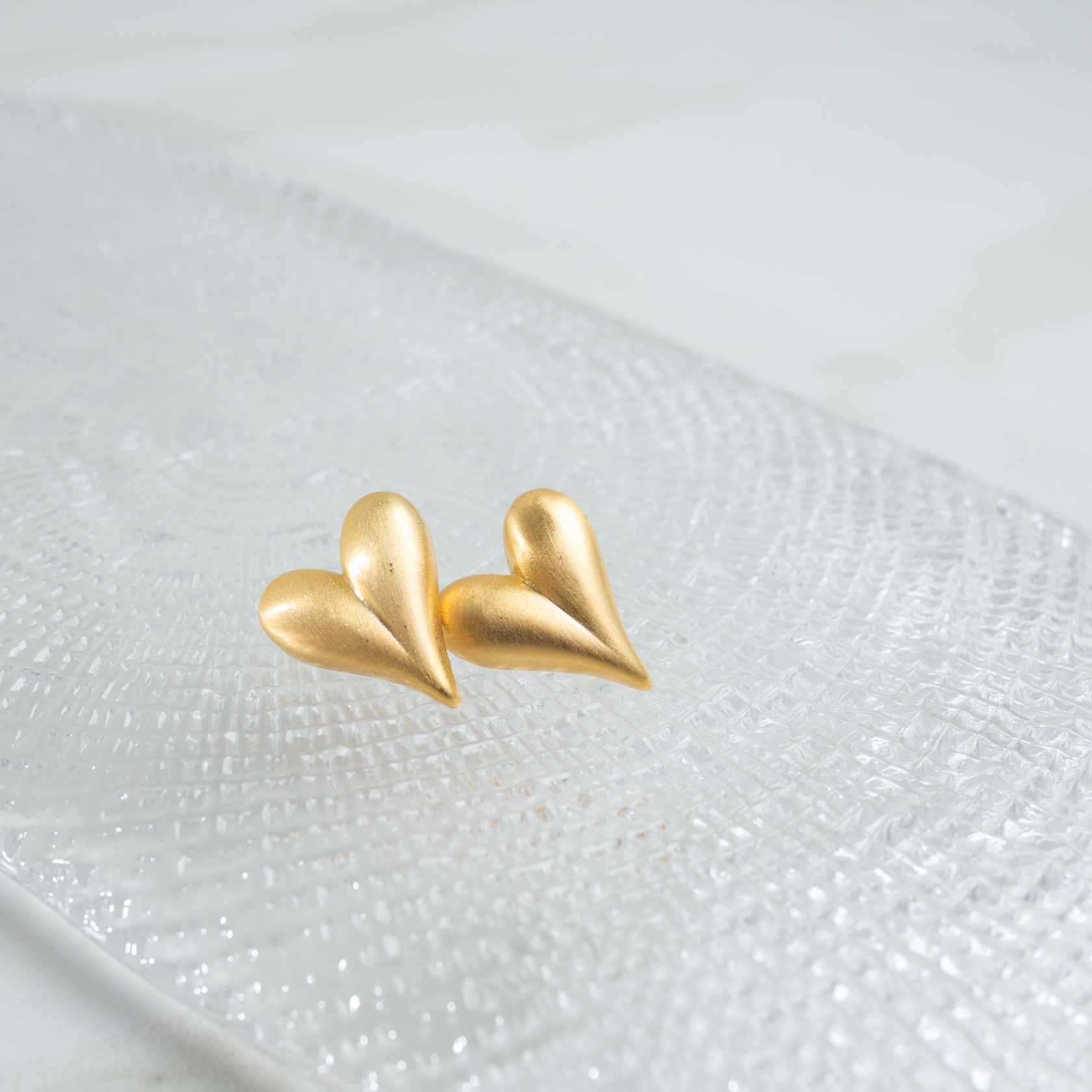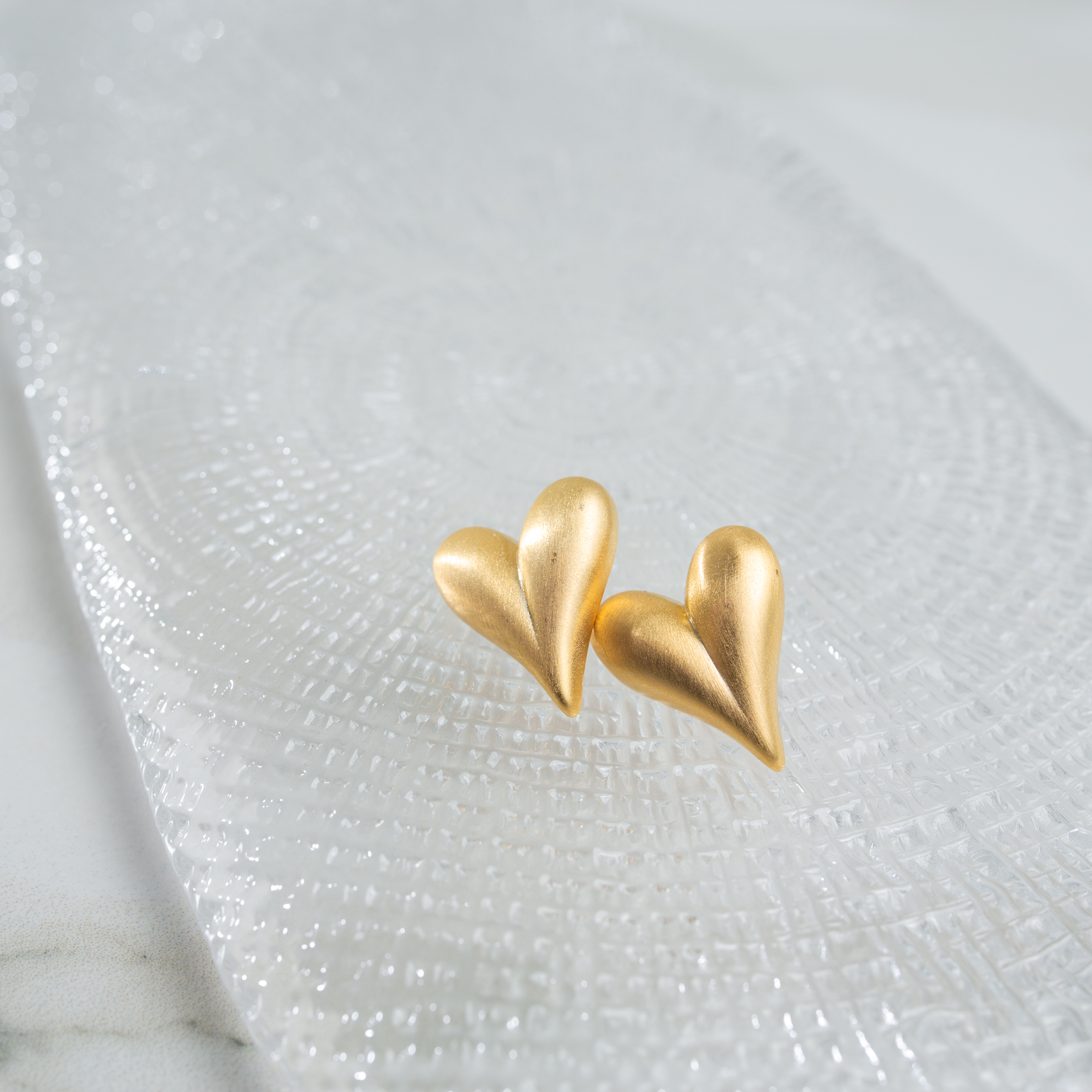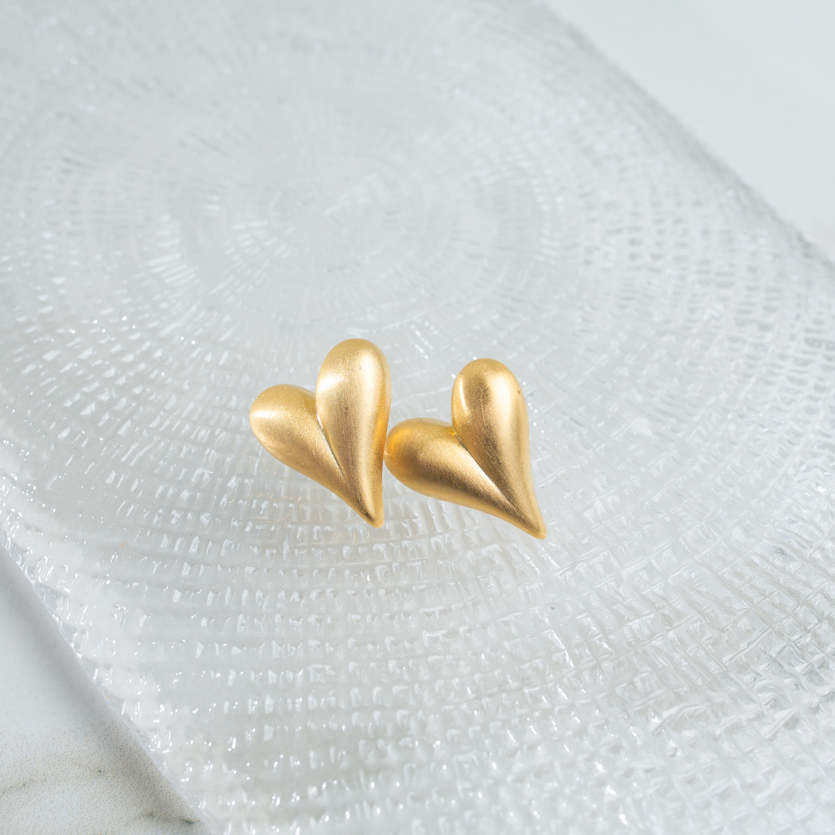 Серьги в форме сердца с матовым золотистым блеском.