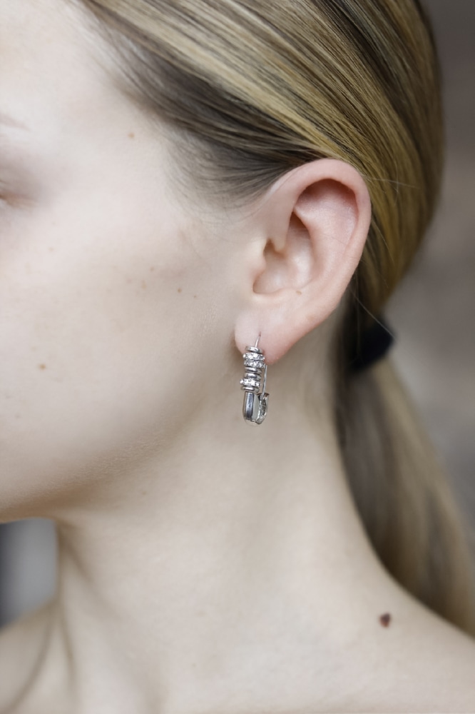 Дерзкий, привлекающий внимание окружающих дизайн этих серёг станет центральным акцентом смелого и яркого образа. Аксессуары в форме декоративной булавки, с необычным дополнением оригинальных деталей, понравятся юным и экстравагантным представительницам прекрасного пола. Такие серьги отлично выступают в качестве самостоятельного украшения. Вставка: Циркон Длина серёжек, см.: 2,7 Рабочая зона серёжек (высота), см.: 0,6 Рабочая зона серёжек (ширина), см.: 1,6 Тип застёжки: Французская Цвет вставки: Белый Цвет металла: Серебро