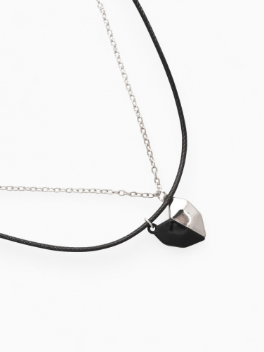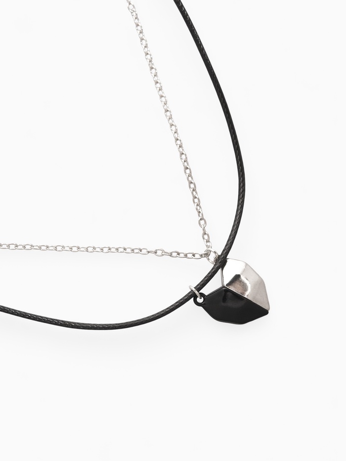Кулоны «Неразлучники» на магните, половинки сердца, цвет чёрно-серебряный, 48 см