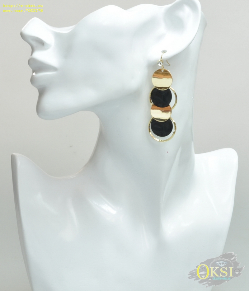 Черный и золотой цвет в украшениях является базовым и универсальным, подходит к любому оттенку одежды и аксессуаров. Длина серьги 6,8 см