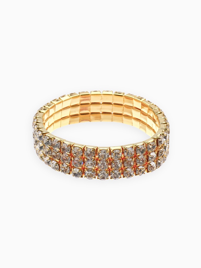 Этот браслет гармонично вписывается в детский гардероб, добавляя лёгкий блеск и утончённость. Белые стразы на золотом фоне создают чистый и свежий образ, который легко сочетается с разными аксессуарами. Аксессуар подчёркивает индивидуальность и помогает завершить образ без усилий.