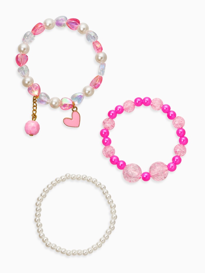 Браслеты детские с подвеской «Выбражулька. Сердце», набор 3 шт. жемчуг, цветной