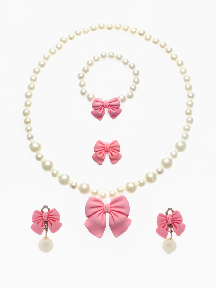 Набор детских украшений Выбражулька «Бант», 4 предмета: кулон, браслет d=6 см кольцо, клипсы, бело-розовый