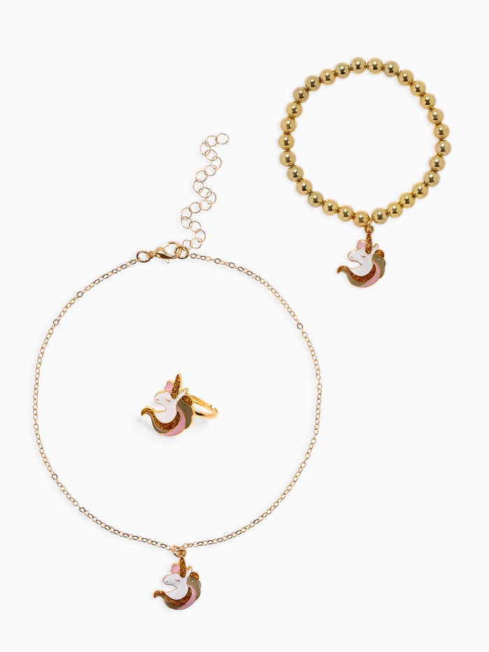 Набор детских украшений Выбражулька «Единороги», 3 предмета: кулон, браслет, кольцо, разноцветный в золоте