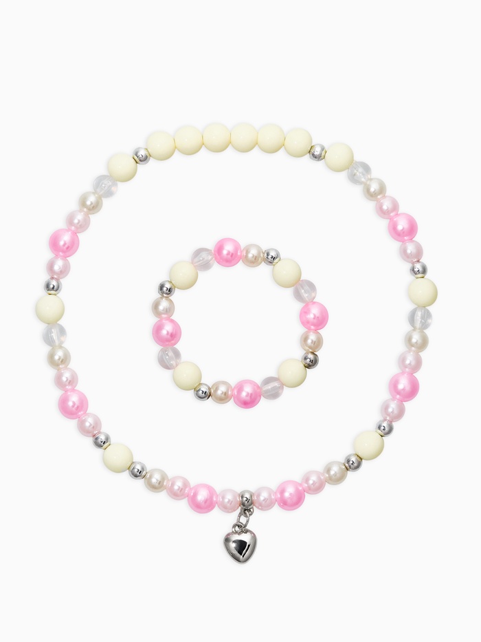 Набор детский «Выбражулька» 2 предмета: бусы, браслет d=6 см сердце, розовый в серебре