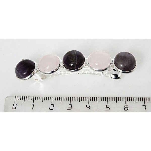 Заколка из аметиста и розового кварца 6см, круг 12мм, 5 камней