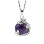 Заколка-крокодил с кварцем тонированным, цвет аметист, круг 20мм