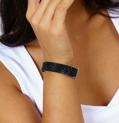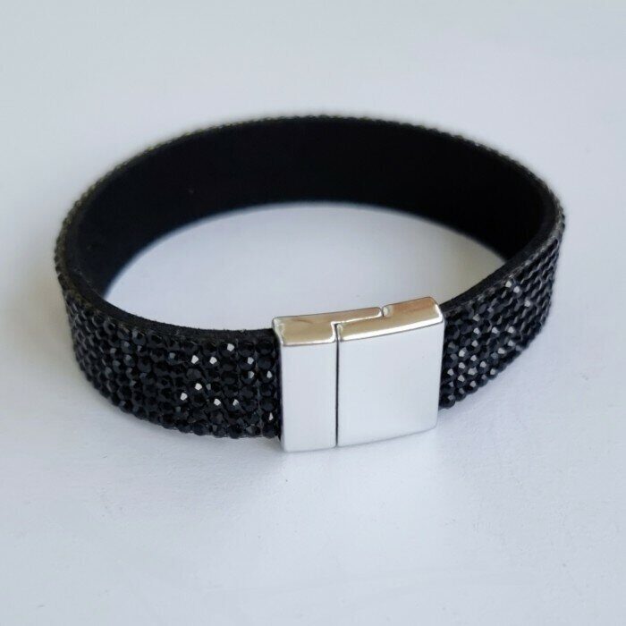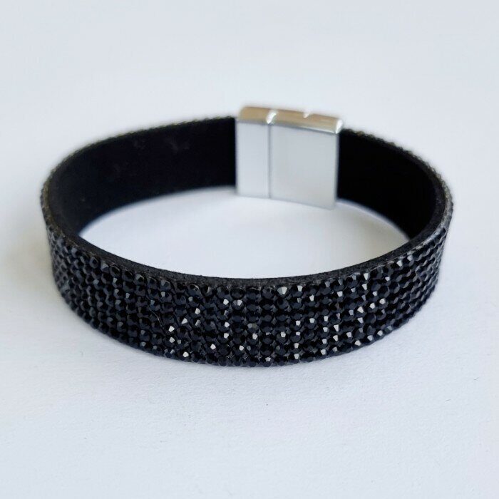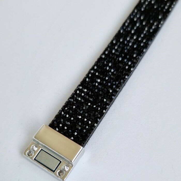 Браслет на руку со стразами, цвет ремешка: черный, цвет камней: черный переливающийся, 748.367