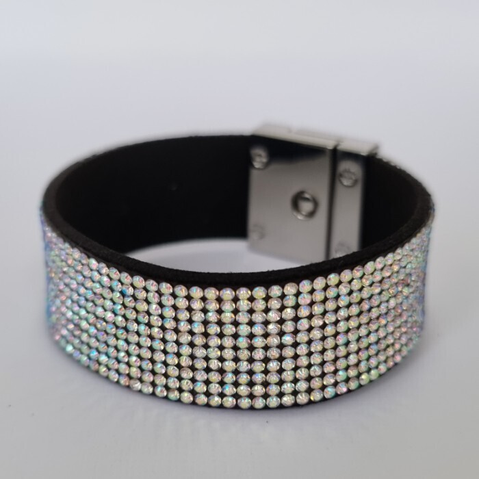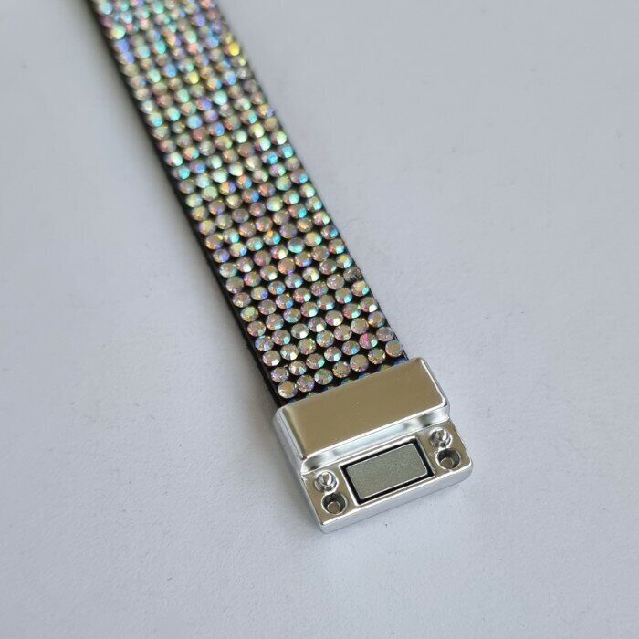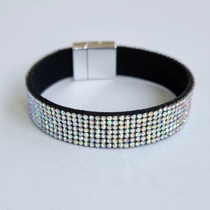 Браслет на руку со стразами, цвет ремешка: черный, цвет камней: хамелеон, 748.368