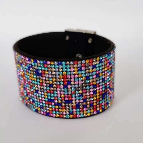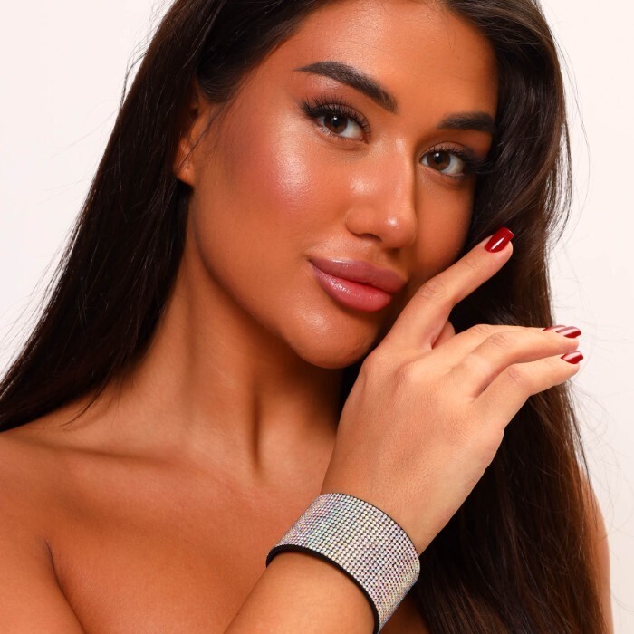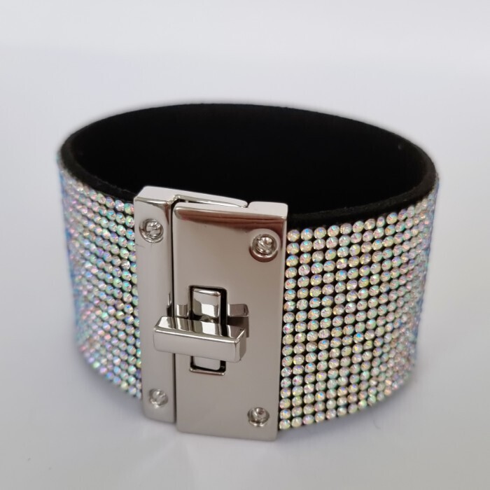 Браслет на руку широкий из сверкающих страз, цвет: перламутровый, арт.002.132