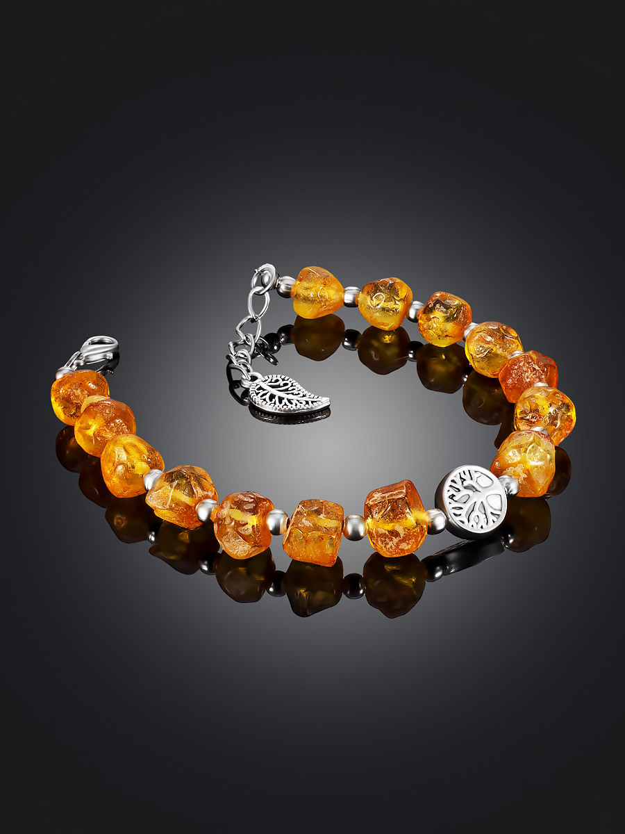 Браслет «Бельтайн» с натуральным нешлифованным золотистым янтарём