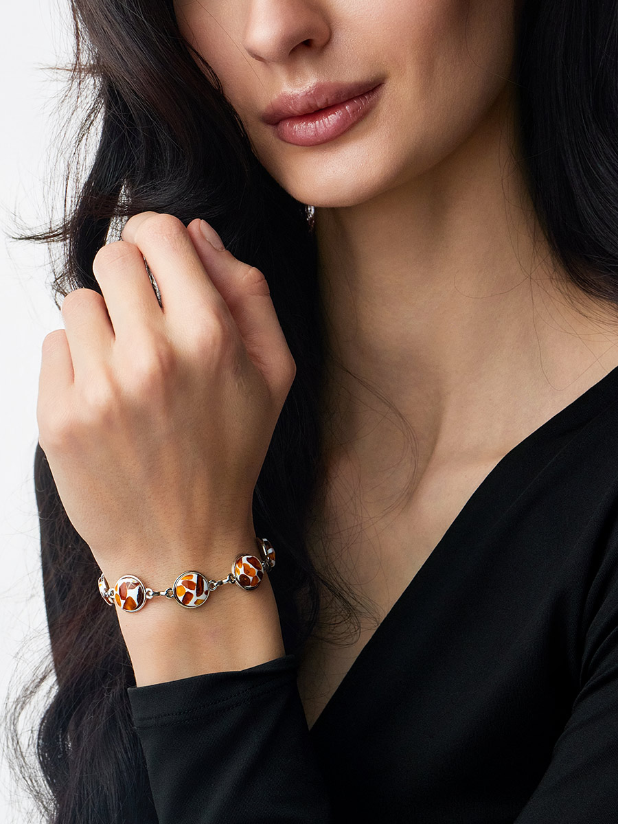 Браслет-цепочка из натурального янтаря «Далматин»