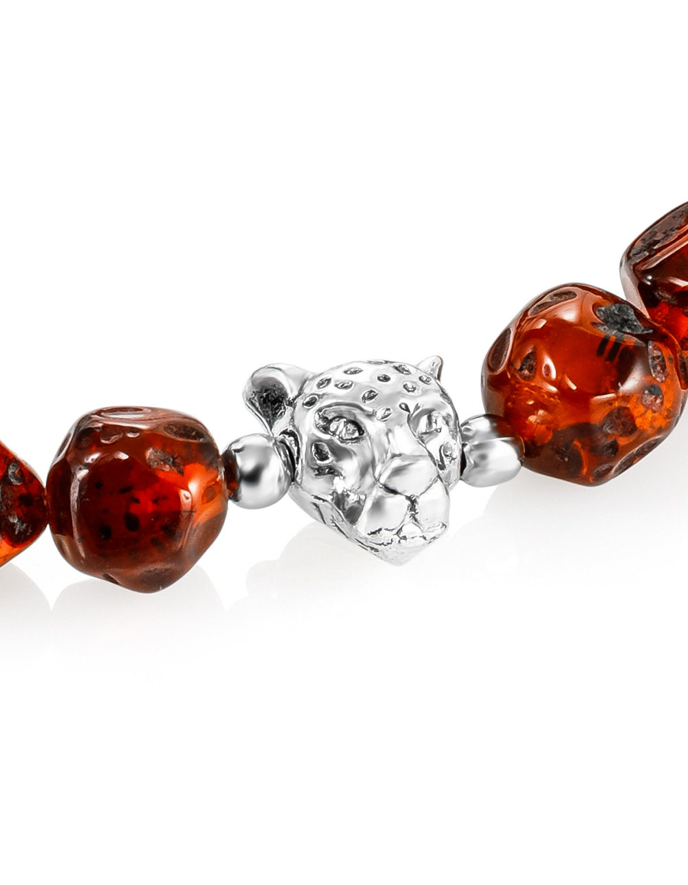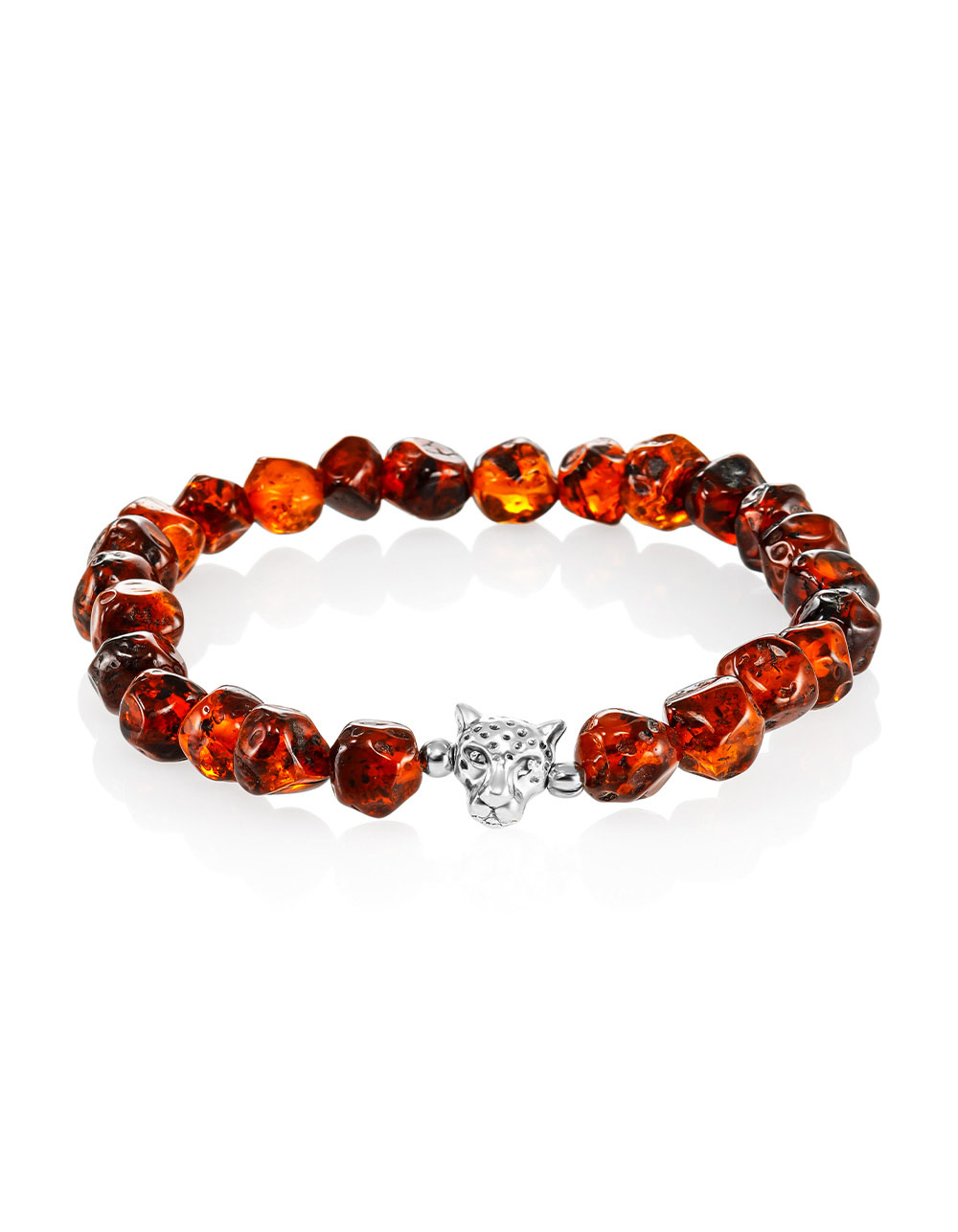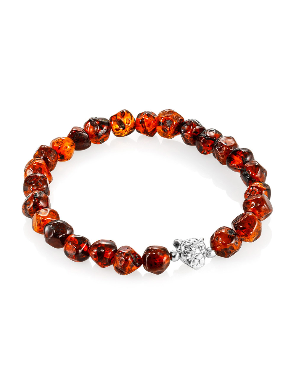 Браслет для мужчин из натурального янтаря с декоративной фурнитурой «Ягуар»