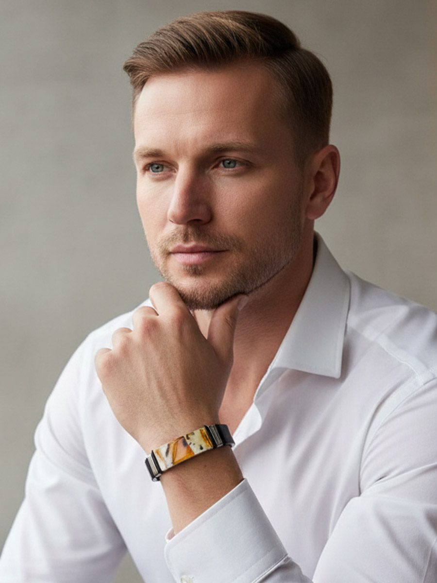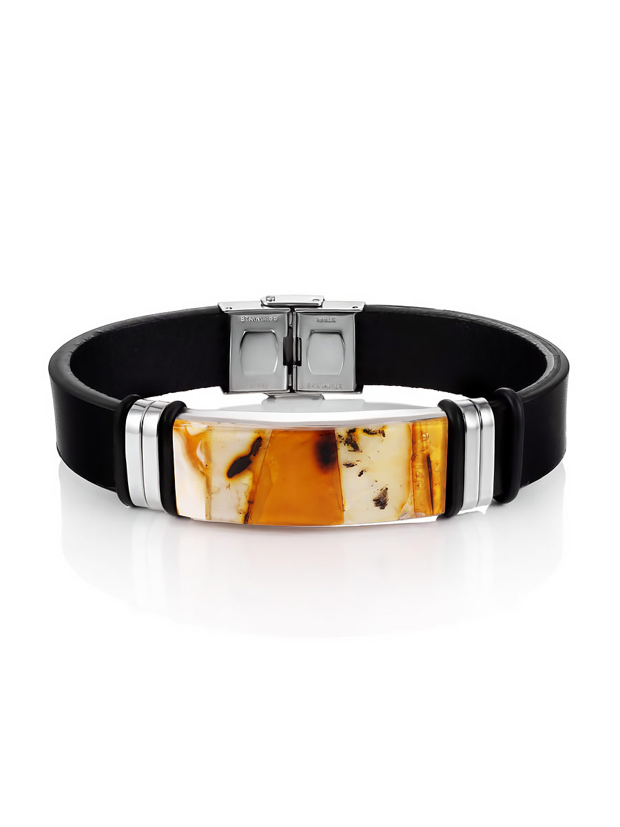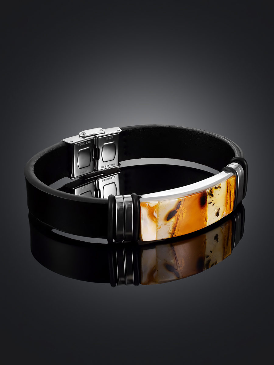 Браслет для мужчин на кожаной основе, украшенный янтарной мозаикой «Сильверстоун»