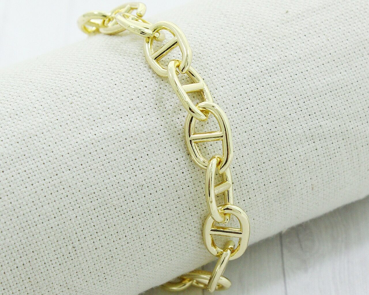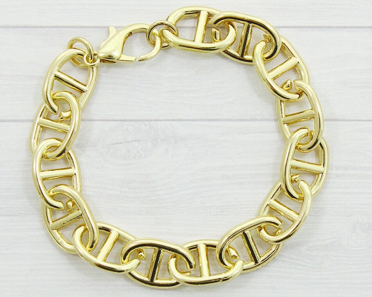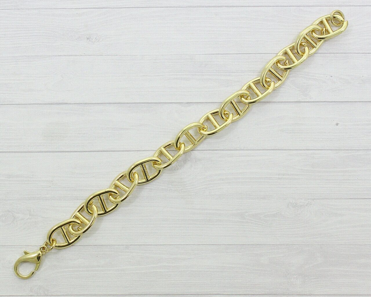 Этот красивый браслет изготовлен из специального гипоаллергенного ювелирного сплава, который затем покрывается золотом. Длина браслета: 18.5 см Наши прямые заказы на ювелирные фабрики позволяют установить для вас самые низкие цены в России на наши самые лучшие качественные украшения.