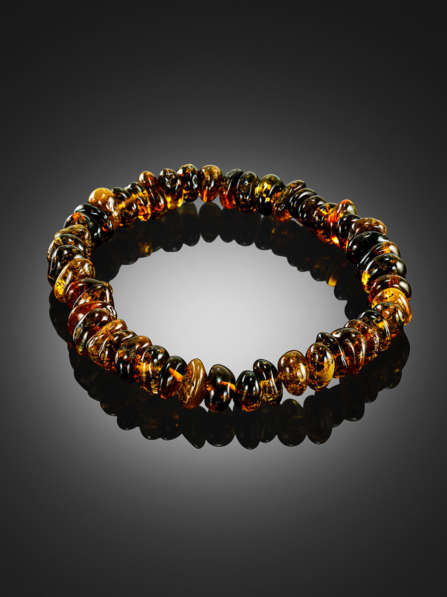 Браслет «Галька чёрная дикая» из натурального янтаря