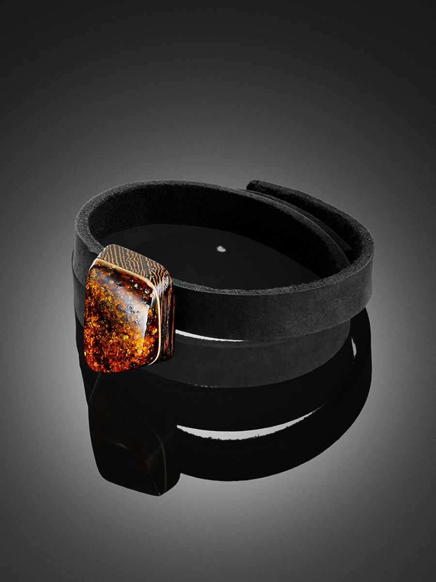 Браслет «Индонезия» из кожи с коньячным янтарём