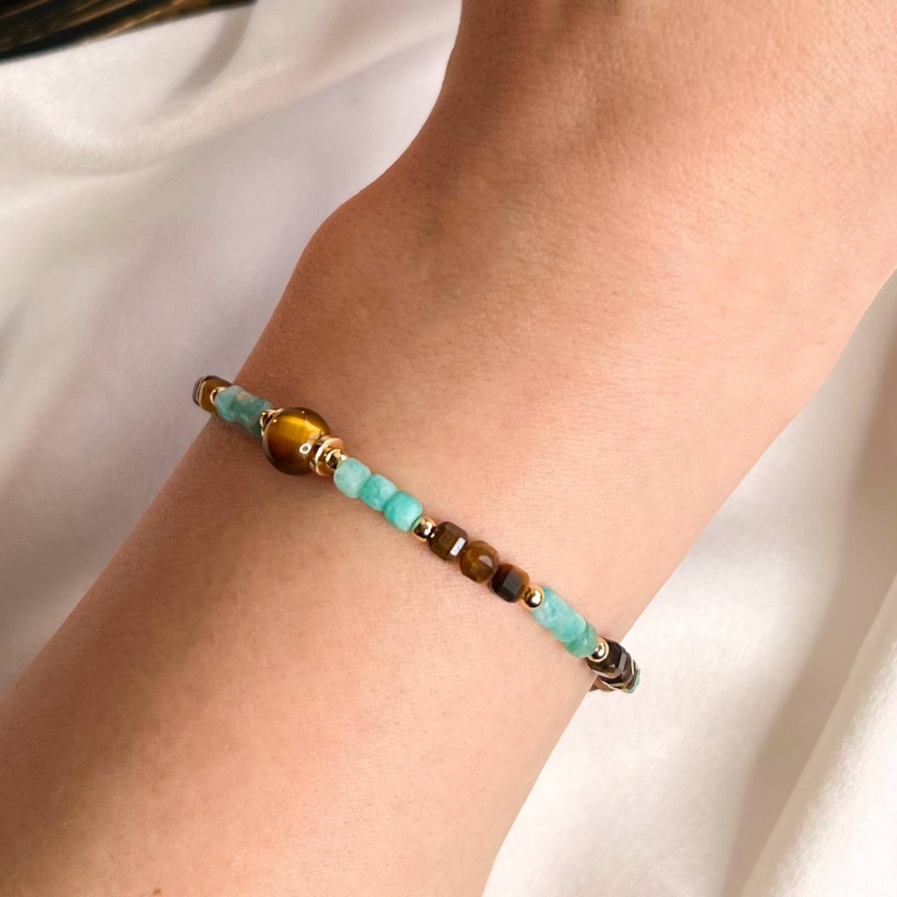 Радуга Самоцветов Браслет из Амазонита и Тигрового глаза