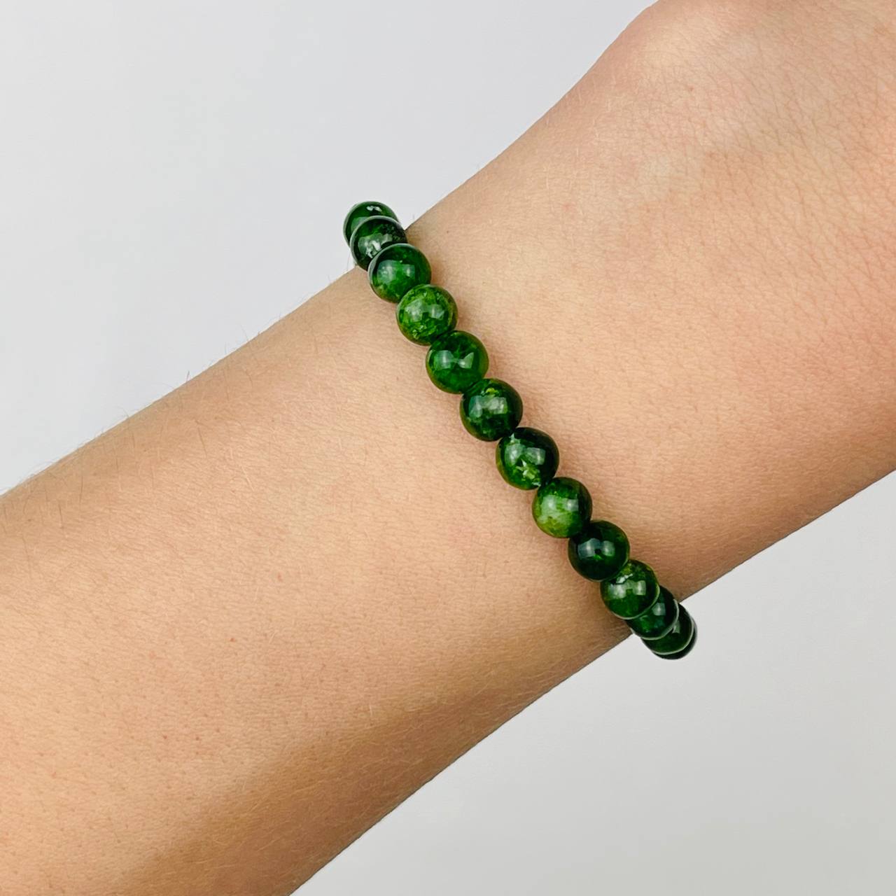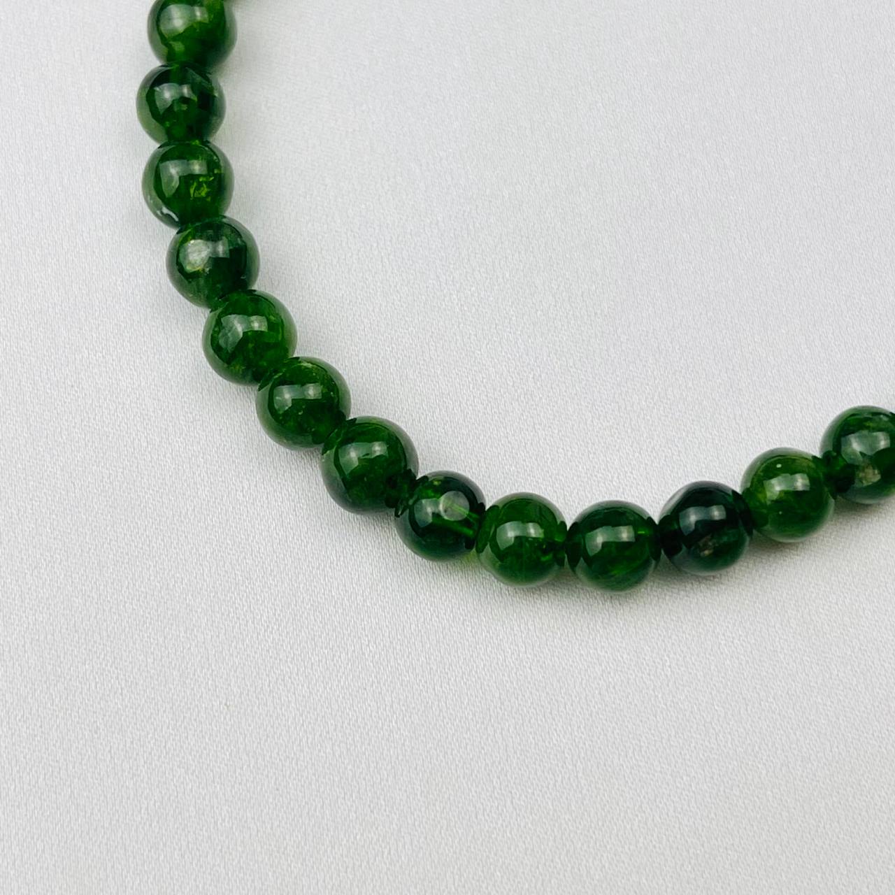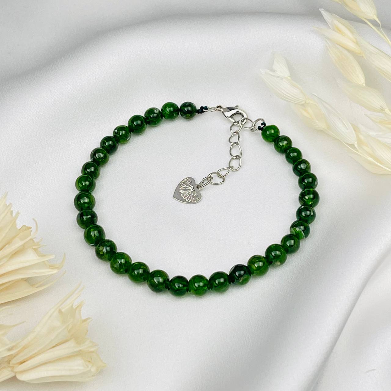 Цвет камня: Зелёный Месторождение..показать: Россия Камень: Хромдиопсид Диаметр: 5,5-6 мм Поверхность: Гладкий Производитель: Радуга Самоцветов (Россия) Тип замка: Карабин с цепочкой: Россия