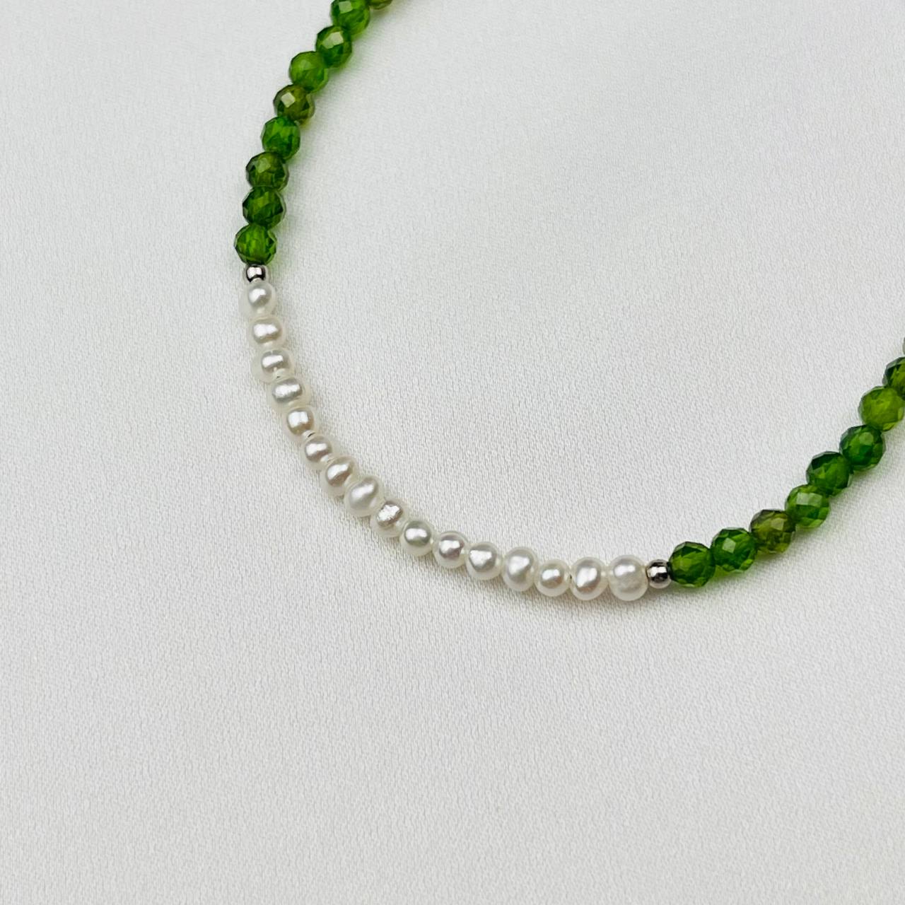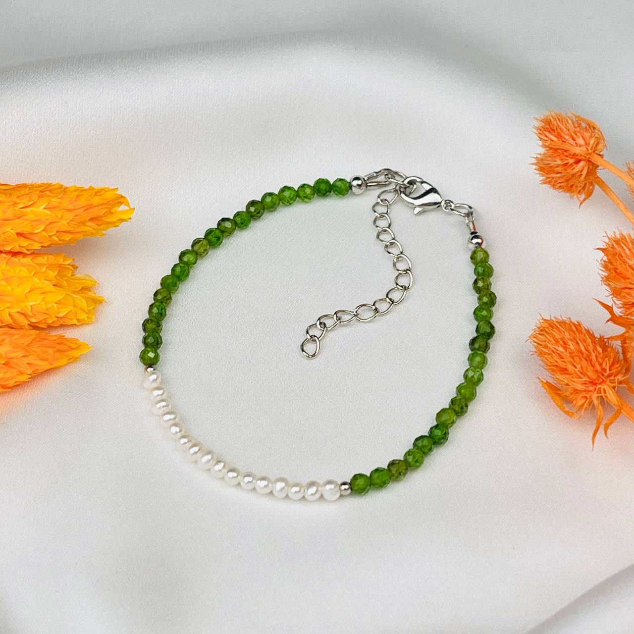 Радуга Самоцветов Браслет из Хромдиопсида и Жемчуга