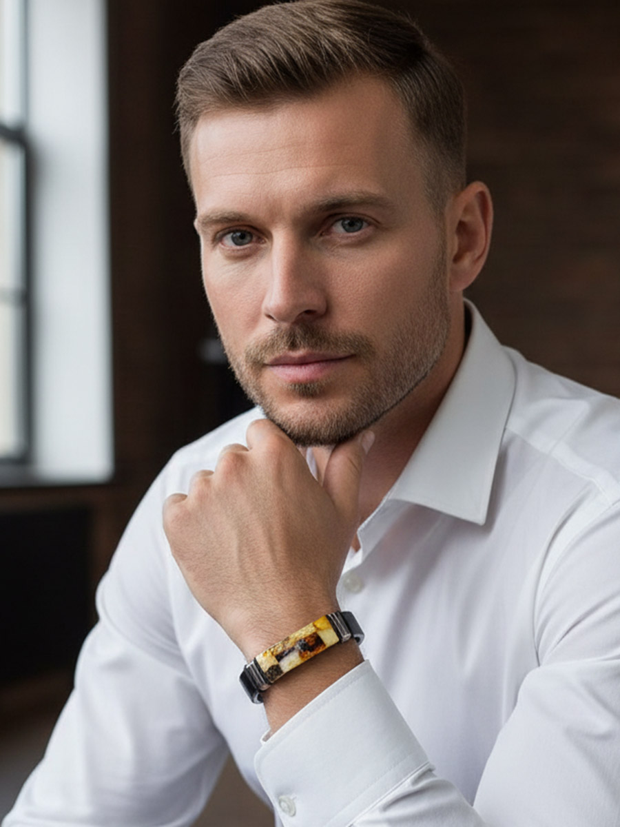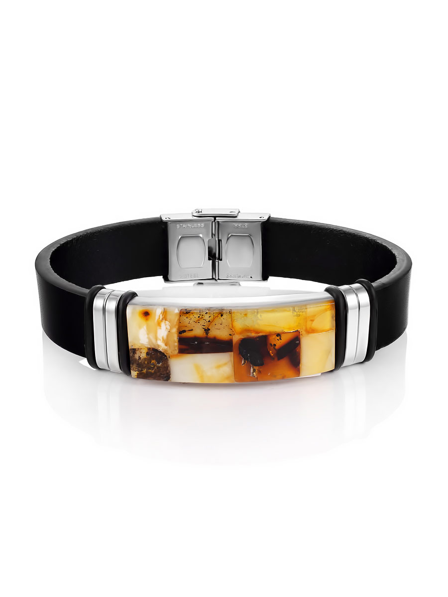 Браслет из кожи, украшенный натуральным янтарём «Сильверстоун»