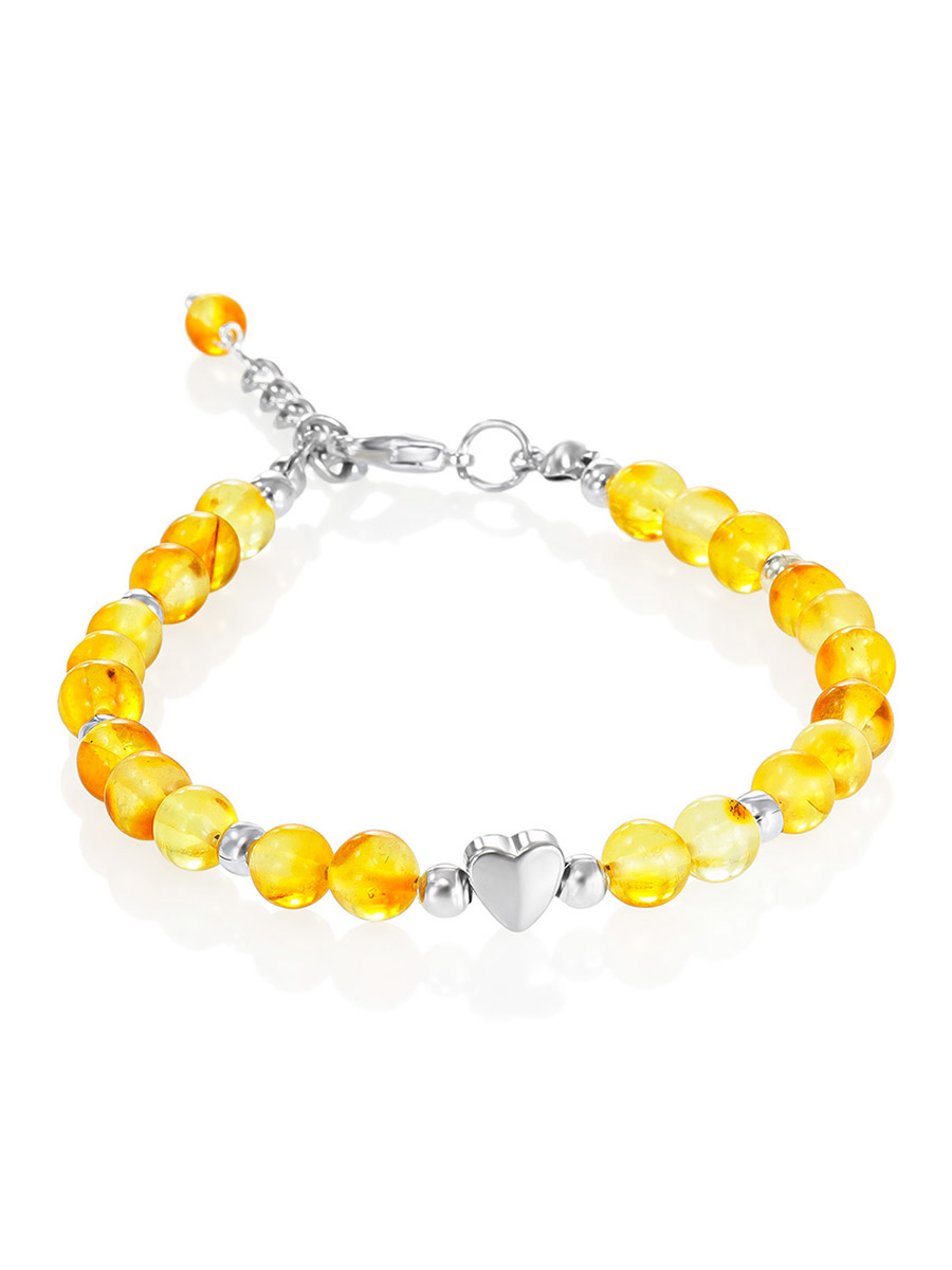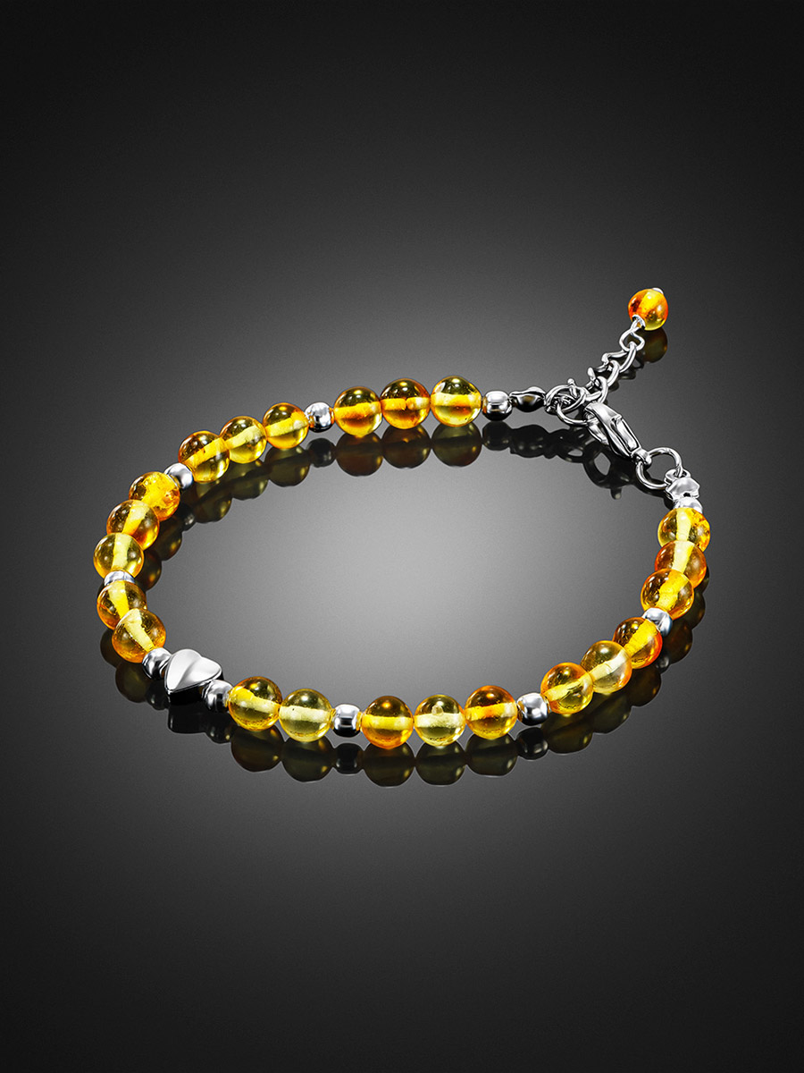 Браслет из лимонного янтаря с декоративным сердечком