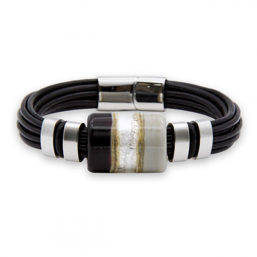 Браслет изготовлен из муранского стекла и гипоаллергенной ювелирной стали, что очень важно для людей с чувствительной кожей. Металл не темнеет и не подвергается воздействиям окружающей среды, надолго обеспечивая красивый внешний вид изделия. Размер стеклянной бусины - 3 см. Вес - 23 гр.