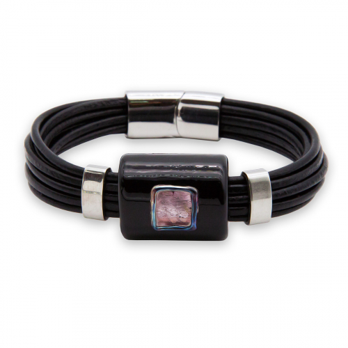Браслет изготовлен из муранского стекла, натуральной кожи и гипоаллергенной ювелирной стали, что очень важно для людей с чувствительной кожей. Металл не темнеет и не подвергается воздействиям окружающей среды, надолго обеспечивая красивый внешний вид изделия. Крепкий магнитный замок с двойной защитой надежно фиксируется на запястье. Ширина браслета - 1,5 см. Размер стеклянной бусины - 1,9x2,5 см. Вес - 33 гр.