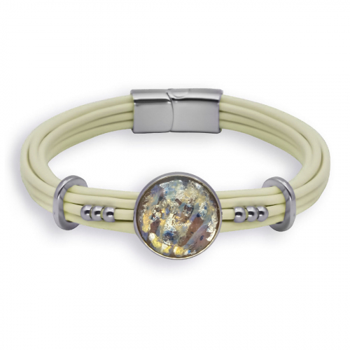 Браслет изготовлен из муранского стекла, натуральной кожи и гипоаллергенной ювелирной стали, что очень важно для людей с чувствительной кожей. Металл не темнеет и не подвергается воздействиям окружающей среды, надолго обеспечивая красивый внешний вид изделия. Крепкий магнитный замок надежно фиксируется на запястье. Ширина браслета - 0,5 см. Диаметр стеклянных шариков - 1,5 и 1,8 см. Вес - 19 гр.