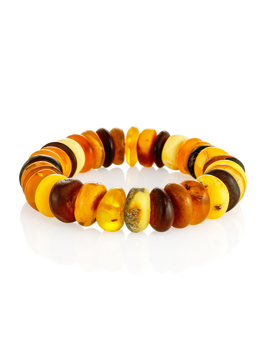 Браслет из натурального балтийского янтаря «Шайбы пёстрые дикие бархатные»