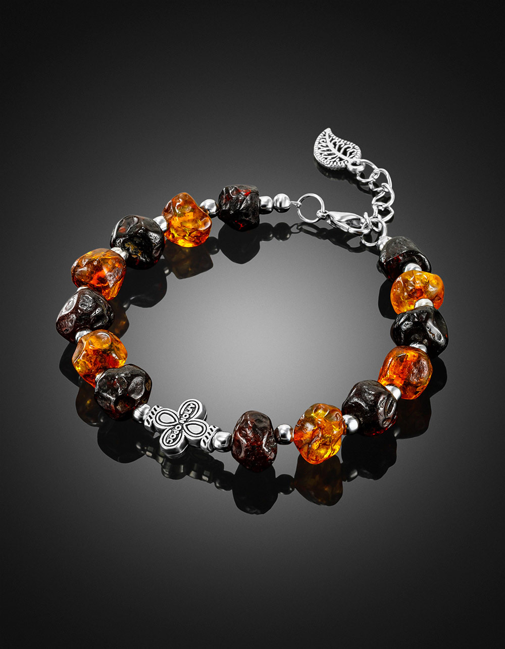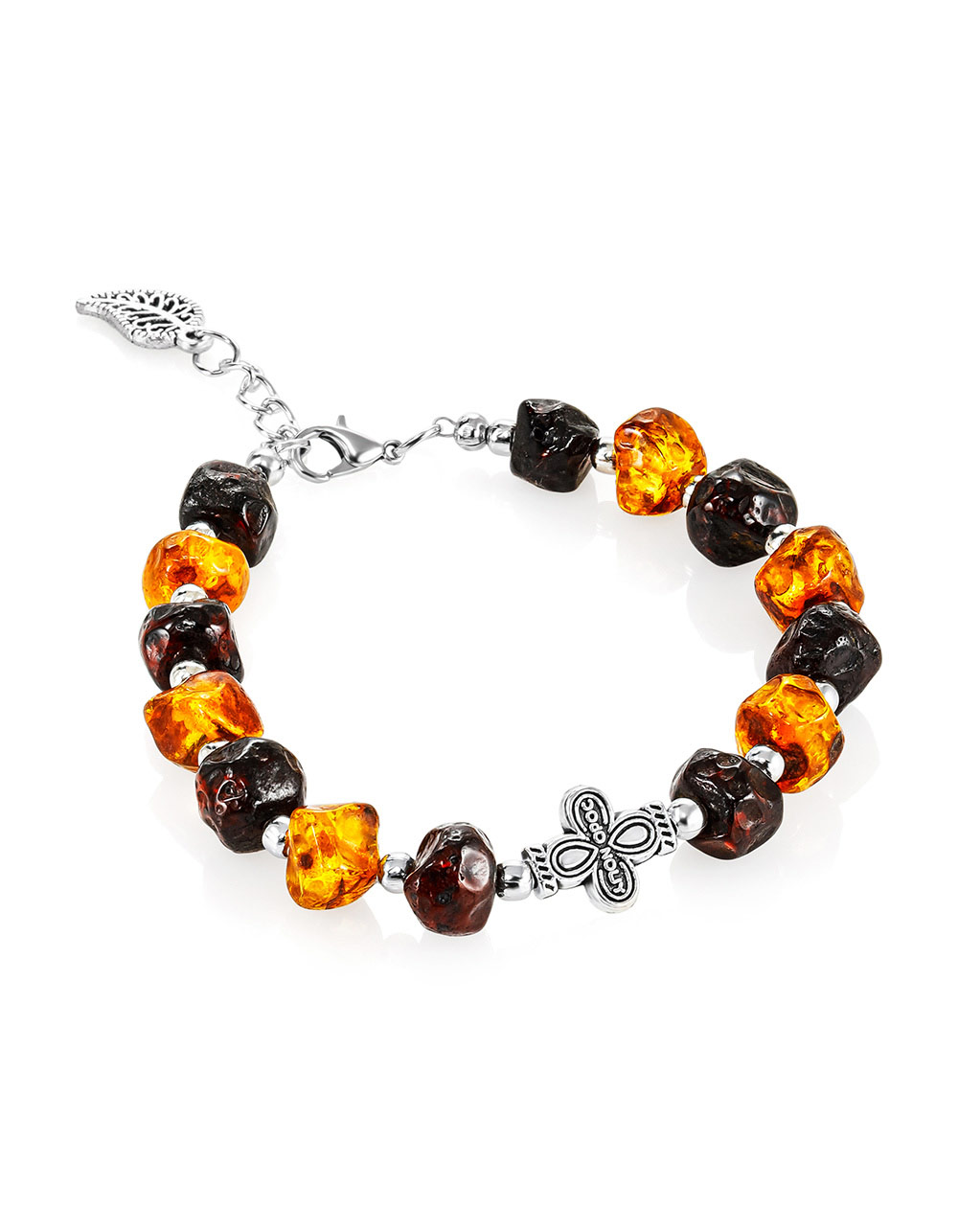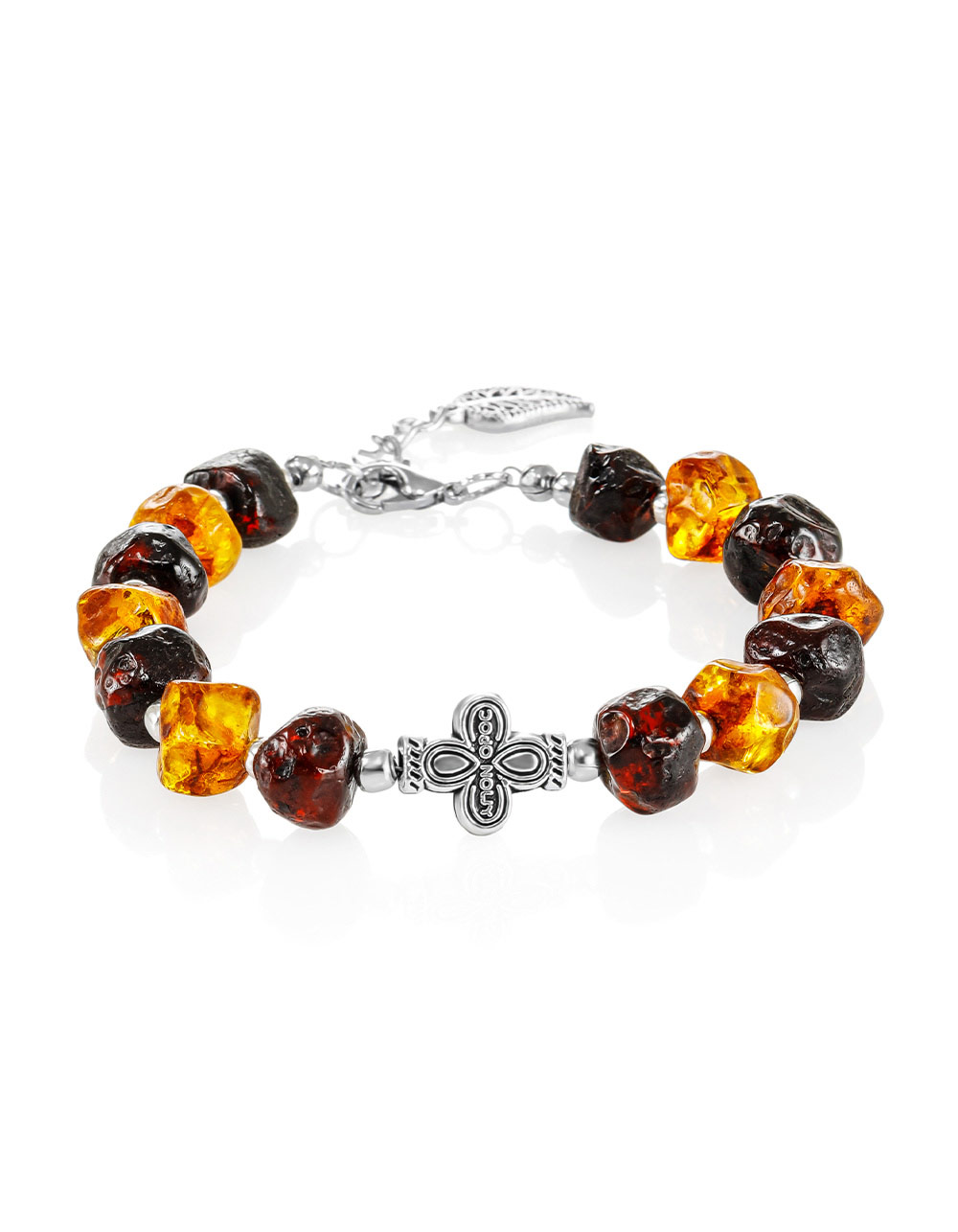 Браслет из натурального тёмного янтаря с вставкой-крестом